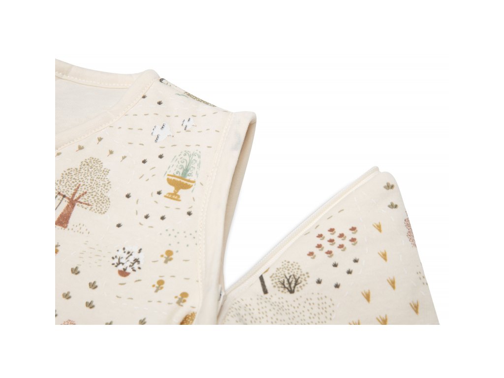 Praktický spací vak s oddeliteľnými rukávmi ponúka variabilitu pri použití podľa počasia a teploty v miestnosti. Vďaka jemnej výplni je vhodný na použitie namiesto perinky. Spací vak zaistí, že sa dieťa v noci neodkope a bude tak po celú dobu spánku v pohodlí a teple bez rizika prechladnutia. Kryté zipsy v prieramkoch umožňujú ľahké oddelenie rukávov, pokiaľ chcete spací vak používať v teplejšom prostredí bez rukávov. Zips na prednej strane umožňuje ľahké vloženie dieťaťa do spacieho vaku a prebaľovanie počas spania.