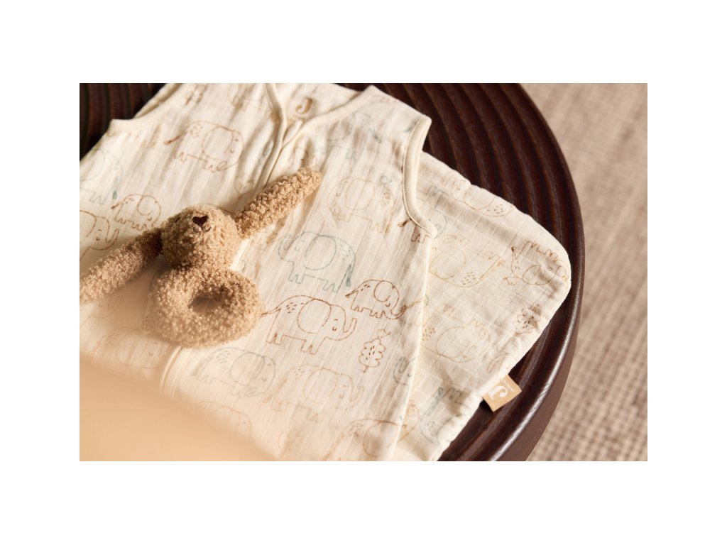 Ľahký spací vak z jemnej 100% bavlny má zips na prednej strane pre ľahké vloženie dieťaťa do spacieho vaku aj prebaľovanie počas spania.