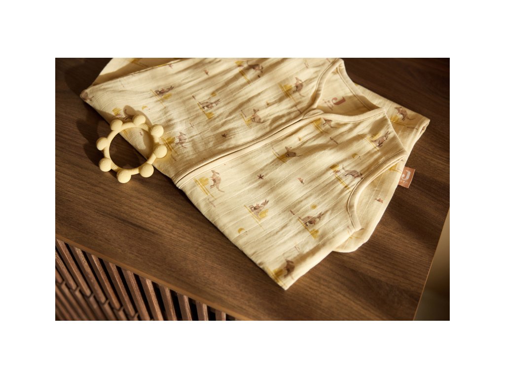 Ľahký spací vak z jemnej 100% bavlny má zips na prednej strane pre ľahké vloženie dieťaťa do spacieho vaku aj prebaľovanie počas spania.