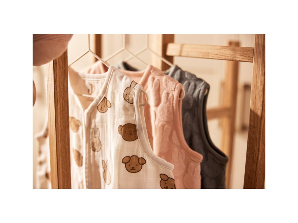 Lehký spací pytel z jemné 100% bavlny má zip na přední straně pro snadné vložení dítěte do spacího pytle i přebalování během spaní.