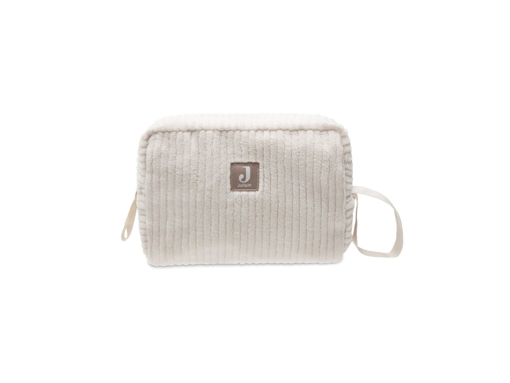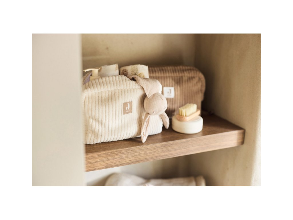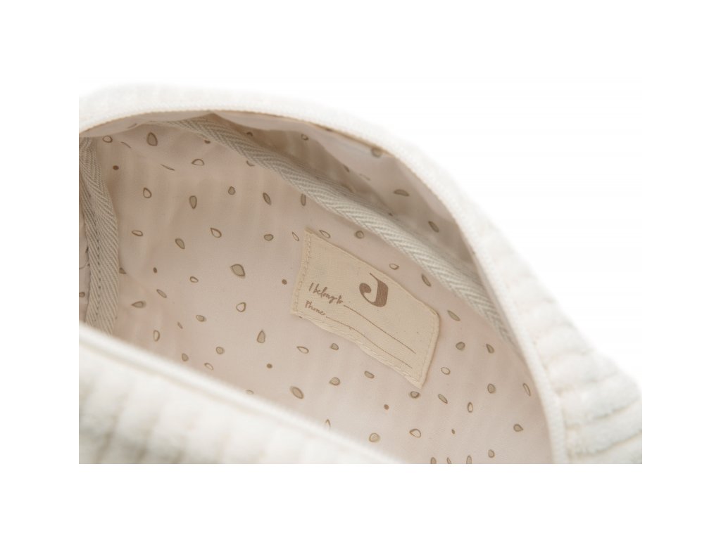 Toaletní pouzdro s uzavíráním na zip je vyrobeno z příjemného žebrovaného materiálu s podšívkou s potiskem lístků. Využijete jej pro přehledné uložení toaletních potřeb pro vaše miminko doma i na cestách.