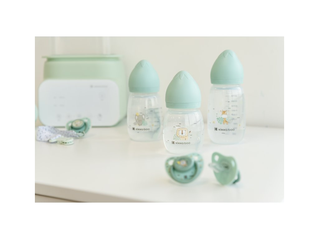 Dojčenská fľaša KikkaBoo s krásnou potlačou má antikolikový silikónový cumlík a viečko pre bezpečné uzavretie. Ergonomický tvar uľahčuje držanie fľaštičky, široké hrdlo umožňuje ľahké čistenie.