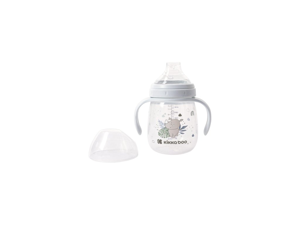 Detský hrnček KikkaBoo s mäkkým silikónovým náustkom je ideálny ako trénovací hrnček na prechod z fľaše so cumlíkom na pitie z hrnčeka. Pohodlné rukoväte uľahčujú dieťaťu držanie. Viečko chráni náustok pred znečistením pri prenášaní hrnčeka.
