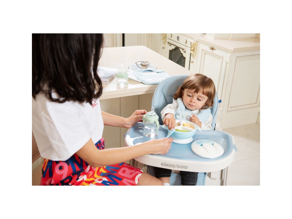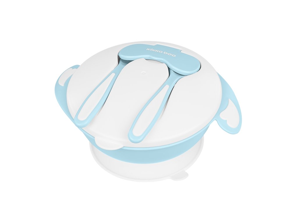 Detská miska 4v1 KikkaBoo obsahuje misku, delený tanier, lyžičku, vidličku a viečko. Vďaka prísavke sa miska nešmýka po stole či jedálnom pulte. Viečko sa ľahko otvára a umožňuje praktické a hygienické uloženie lyžičky a vidličky. Delený vyberateľný tanier umožňuje oddelené servírovanie jednotlivých častí desiaty či obeda.