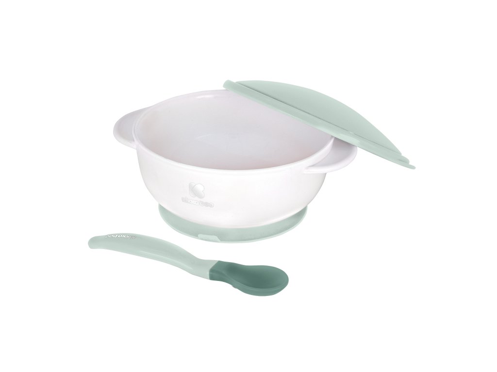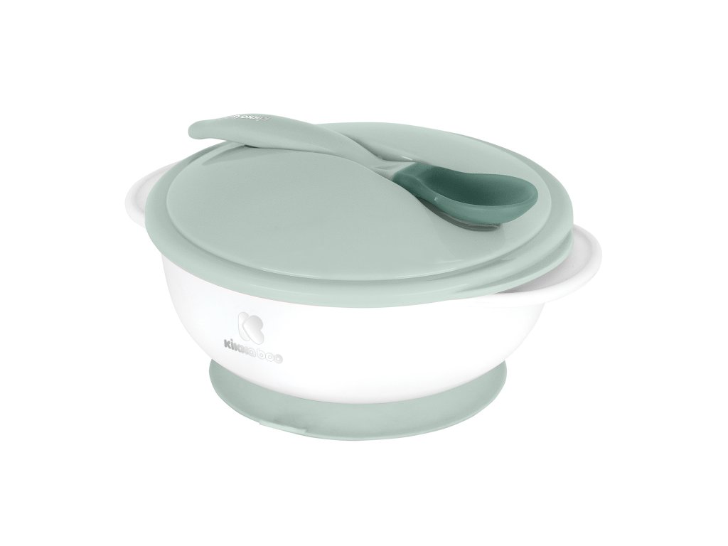 Dětská miska KikkaBoo obsahuje misku s přísavkou, lžičku s tepelným senzorem a víčko. Díky přísavce miska neklouže po stole či jídelním pultu. Lžička s tepelným senzorem změní barvu, pokud je teplota příkrmu příliš vysoká. Víčko se snadno otevírá a umožňuje praktické uložení lžičky.