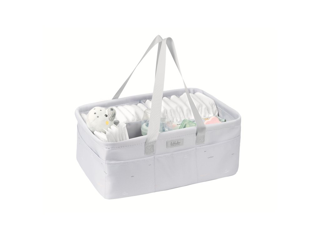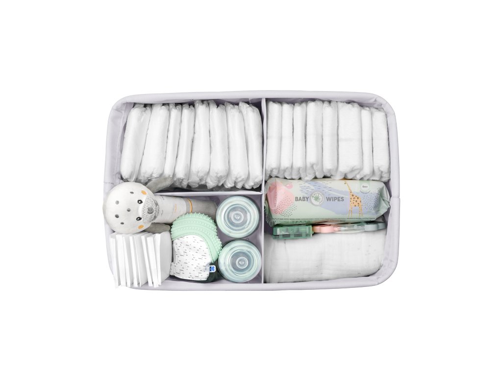Praktický prenosný organizér v krásnom textilnom prevedení s vnútornými priehradkami vám pomôže prehľadne uložiť toaletné a prebaľovacie potreby pre vaše bábätko. Vďaka držadlám sa ľahko prenáša a môžete ho tak mať vždy po ruke kdekoľvek potrebujete.