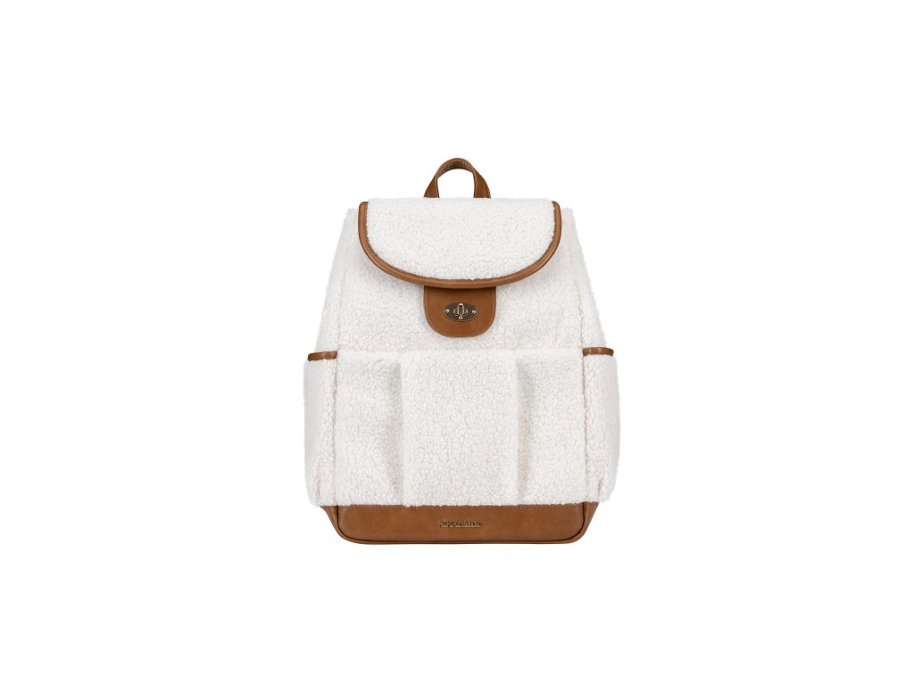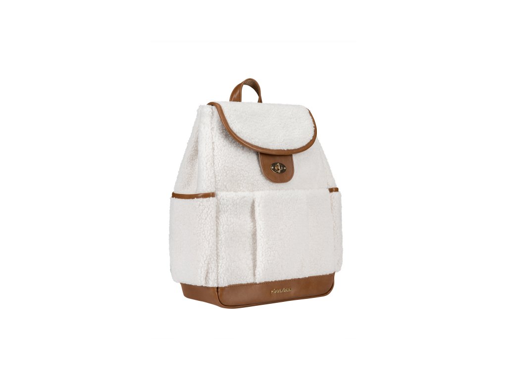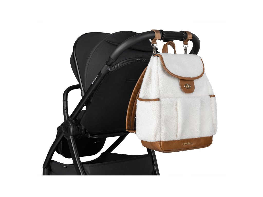 Prebaľovací batoh z plyšového materiálu s detailmi z umelej kože umožňuje prehľadné uloženie všetkého potrebného na prechádzky a výlety s vašim dieťaťom. Klipy umožňujú zavesenie na madlá kočíka. Magnetické uzatváranie s otočným kovovým uzáverom umožňujú ľahké otvorenie batohu jednou rukou.