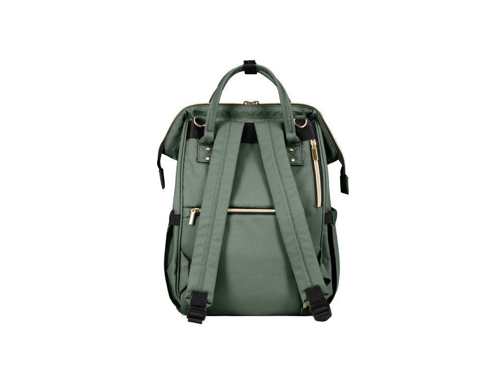 Vnútri batohu nájdete množstvo vreciek a priehradok aj vodeodolné vrecko na uloženie vlhkých predmetov. Široký spôsob otvárania batohu uľahčuje orientáciu v uloženom obsahu. Na vonkajšej strane nájdete vrecká s uzatváraním na zips aj vrecko na uloženie fľaše. Termoizolačné vrecká na fľaše pomáhajú udržať nápoje či mlieko dlhšiu dobu v optimálnej teplote. Súčasťou plecniaka je aj prebaľovacia podložka.