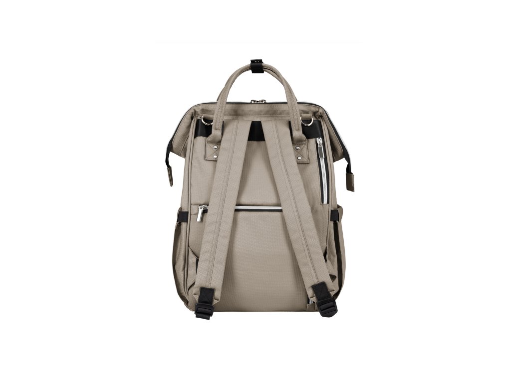 Vnútri batohu nájdete množstvo vreciek a priehradok aj vodeodolné vrecko na uloženie vlhkých predmetov. Široký spôsob otvárania batohu uľahčuje orientáciu v uloženom obsahu. Na vonkajšej strane nájdete vrecká s uzatváraním na zips aj vrecko na uloženie fľaše. Termoizolačné vrecká na fľaše pomáhajú udržať nápoje či mlieko dlhšiu dobu v optimálnej teplote. Súčasťou plecniaka je aj prebaľovacia podložka.