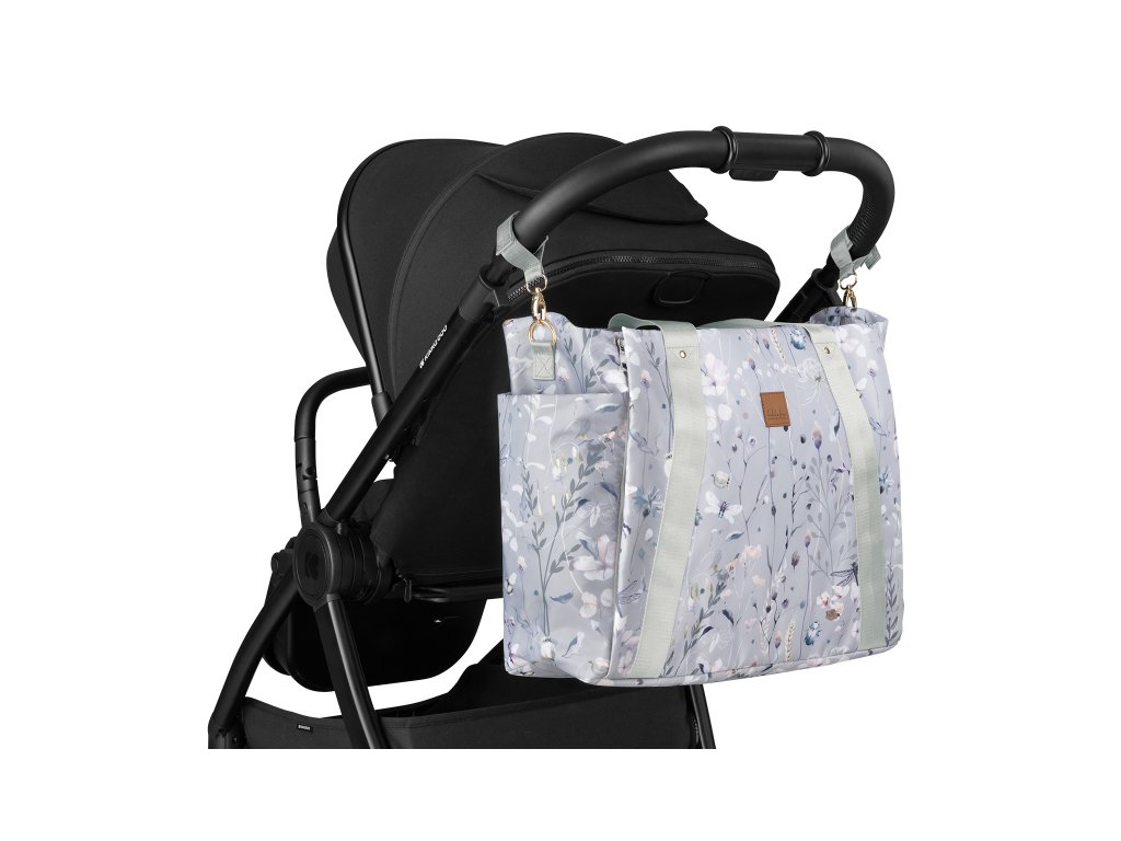 Štýlová prebaľovacia taška umožňuje prehľadné uloženie všetkého potrebného na prechádzky a výlety s vašim dieťaťom. Nastaviteľné držadlá umožňujú nosiť tašku aj ako batoh na chrbte. Klipy umožňujú zavesenie na madlá kočíka.