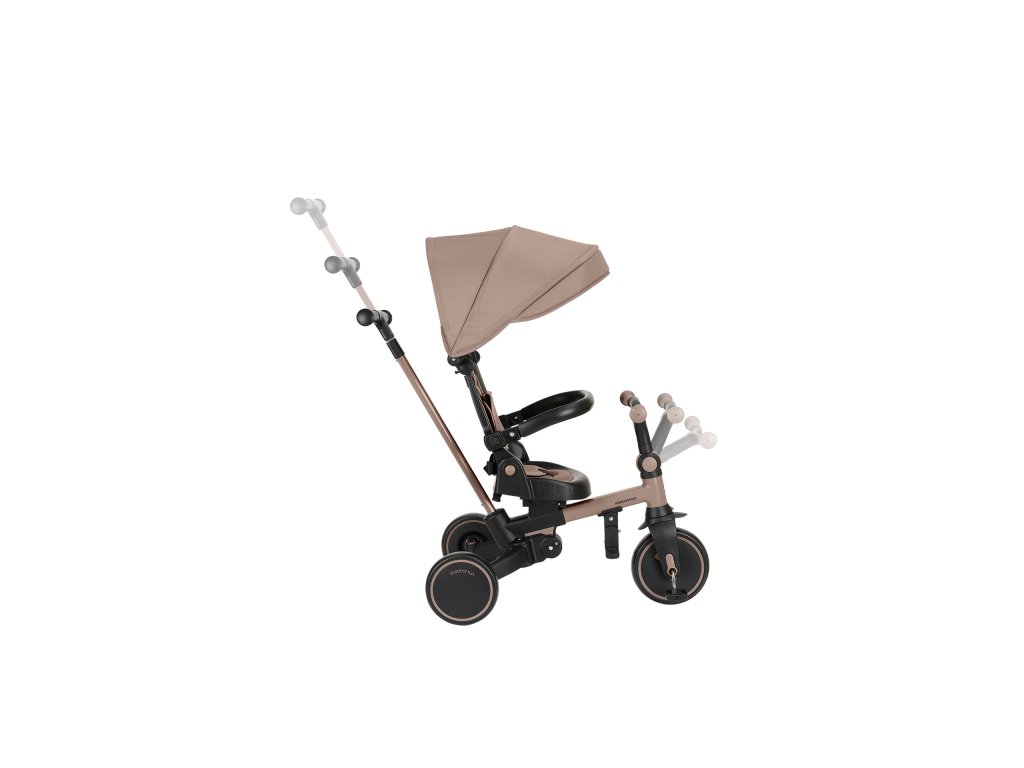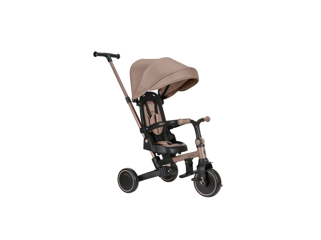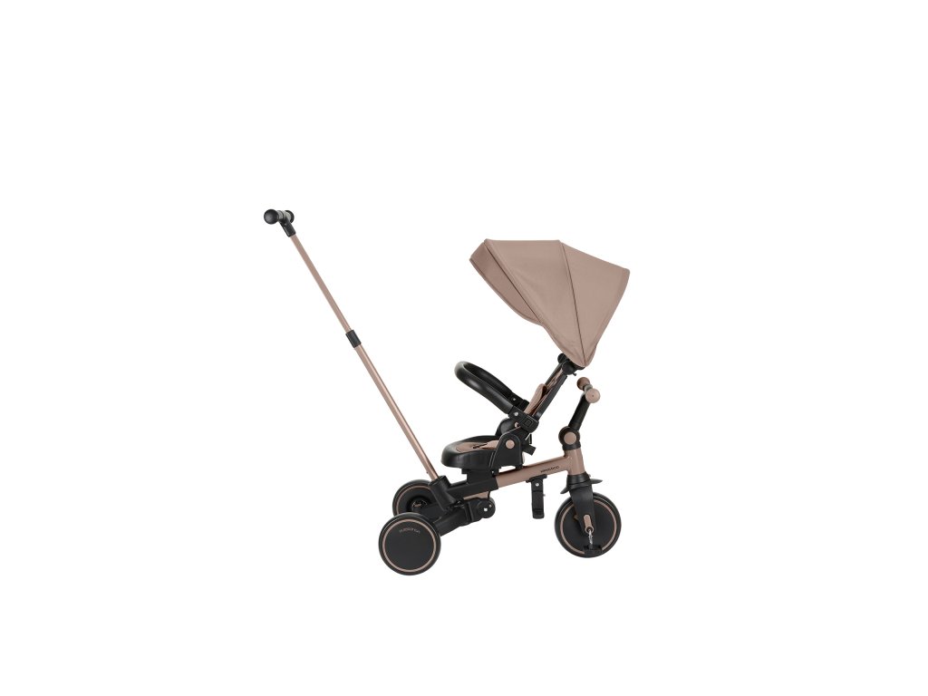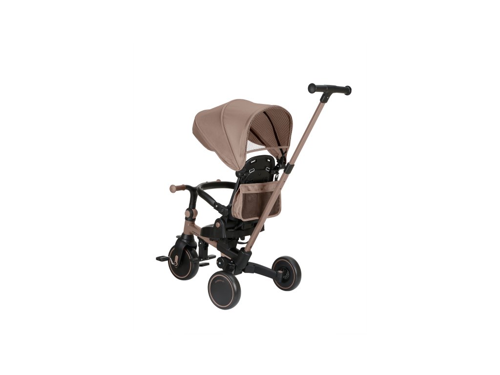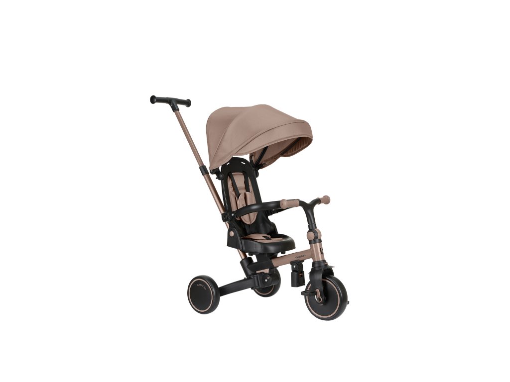 Pre maximálne bezpečie je trojkolka vybavená 5-bodovým pásom, odnímateľným bezpečnostným madlom a nastaviteľnou strieškou, ktorú je možné podľa potreby odňať. Nechýba sklápacia opierka chrbta nastaviteľná do 4 polôh, nastaviteľné riadidlá a otočné sedátko.