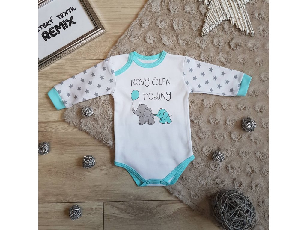 Kojenecké body s dlhým rukávom a potlačou na prednej strane. Body sú vyrobené z kvalitnej 100% bavlnky.