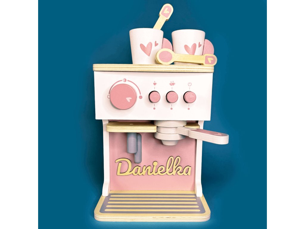 Je vyrobený z kvalitného dreva s jemným ružovým dizajnom, ktorý pôsobí moderne a zároveň láskavo zapadne do každého detského kútika. Tento kávovar podporuje rozvoj fantázie, sociálnych zručností a rozvíja detskú hru na role – dieťa nie je len pozorovateľom, ale aktívnym tvorcom spomienok.