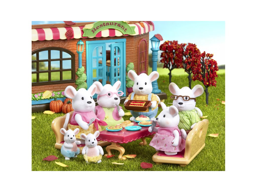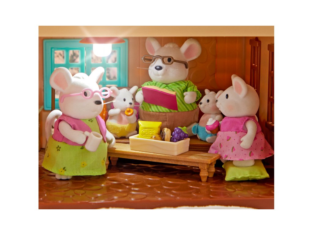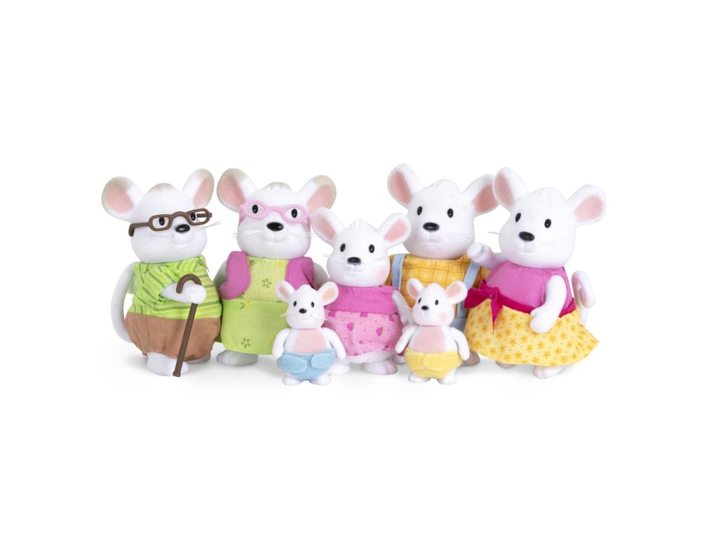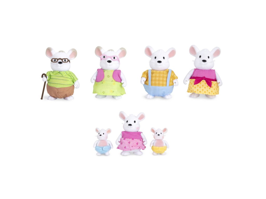 Sada obsahuje 7 postavičiek myší. Ďalšie postavičky zvieratiek, domčeky, obchody, dopravné prostriedky a pod. sa predávajú samostatne. Všetky postavičky a doplnky Li'l Woodzeez sú navzájom kompatabilné a umožnia vám vytvoriť originálne mestečko pre nekonečnú hru rozvíjajúcu fantáziu a kreativitu vášho dieťaťa.