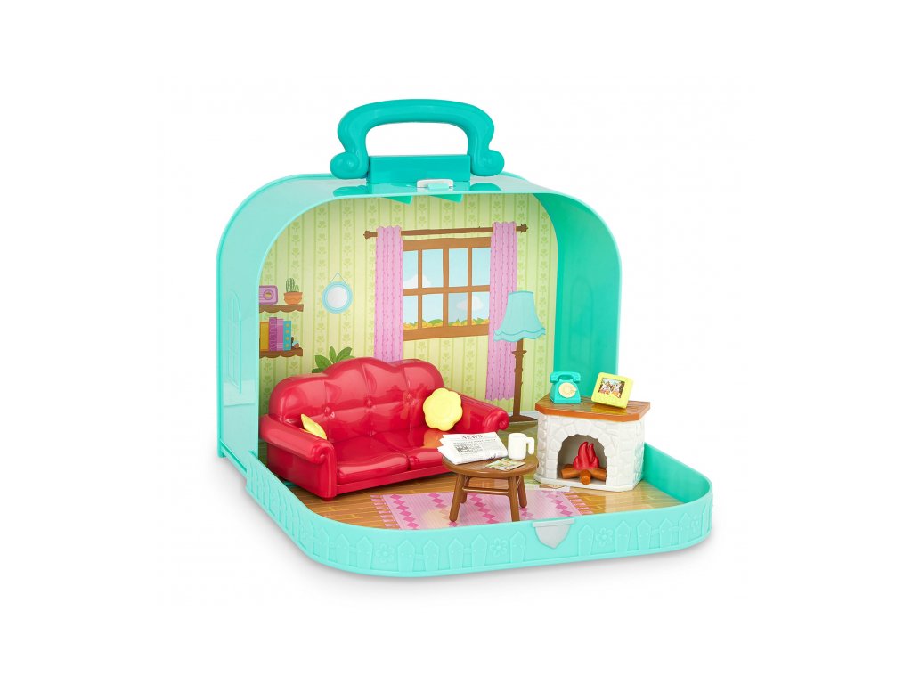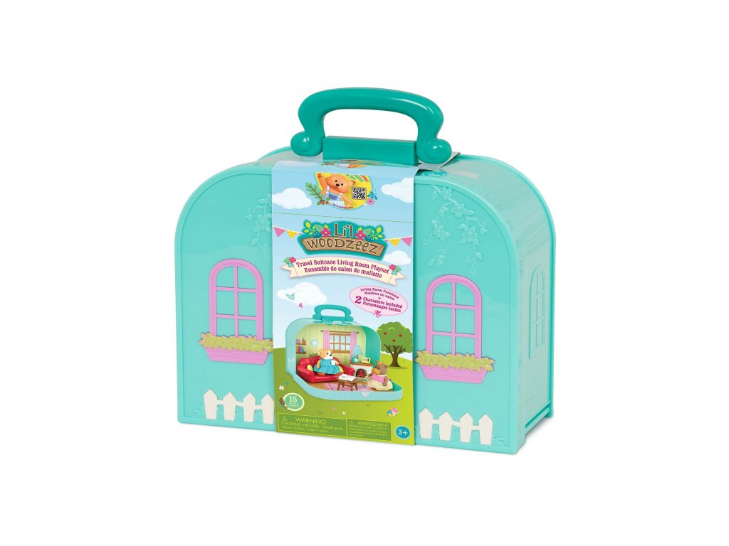 Cestovní sada hraček Li'l Woodzeeze v praktickém kufříku umožní vašemu dítěti hrát si se svými oblíbenými postavičkami kdekoli na dovolené, výletech či během víkendu u prarodičů. Kufřík se po otevření promění v bohatě vybavený obývací pokoj s nábytkem, doplňky a postavičkami buldoka Avy a losice Eloise.