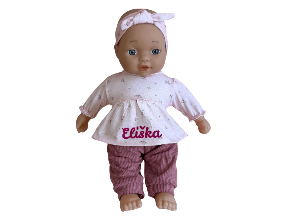 Roztomilou panenku v podobě miminka může vaše holčička i chlapeček převlékat, chovat, krmit lahvičkou, uklidňovat dudlíkem i vozit v kočárku. Panenka je oblečena do něžných růžových šatiček, žebrovaných kalhot a čelenky, součástí balení je i lahvička a dudlík.