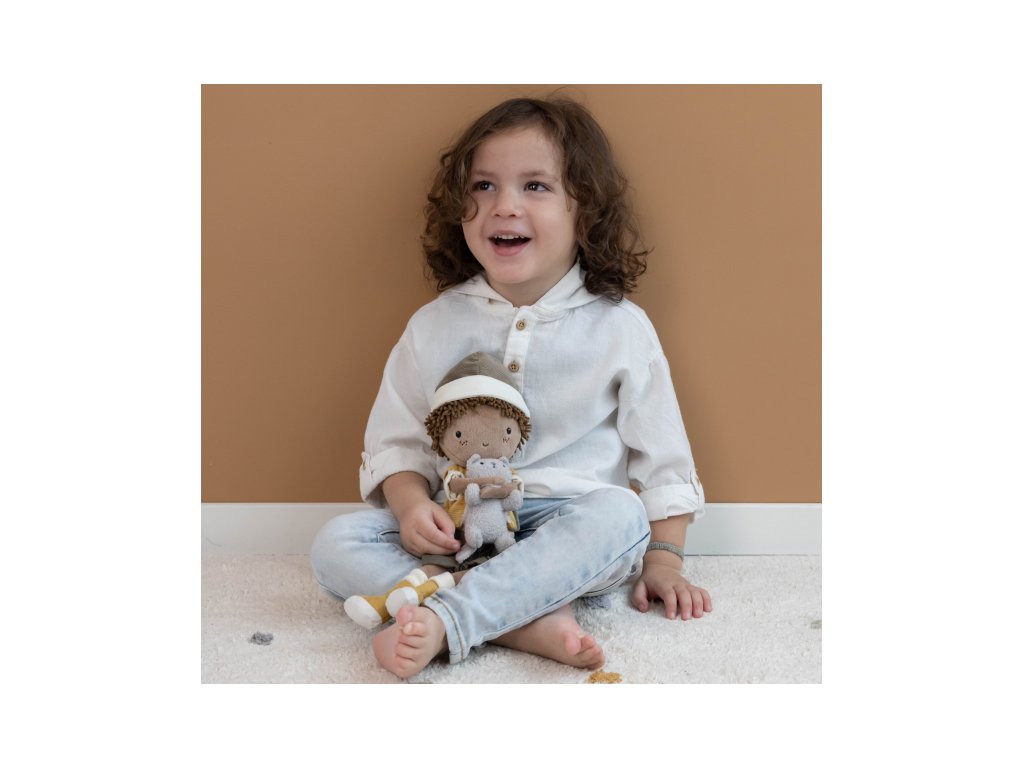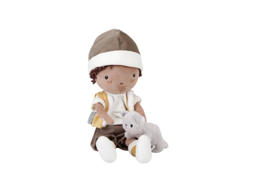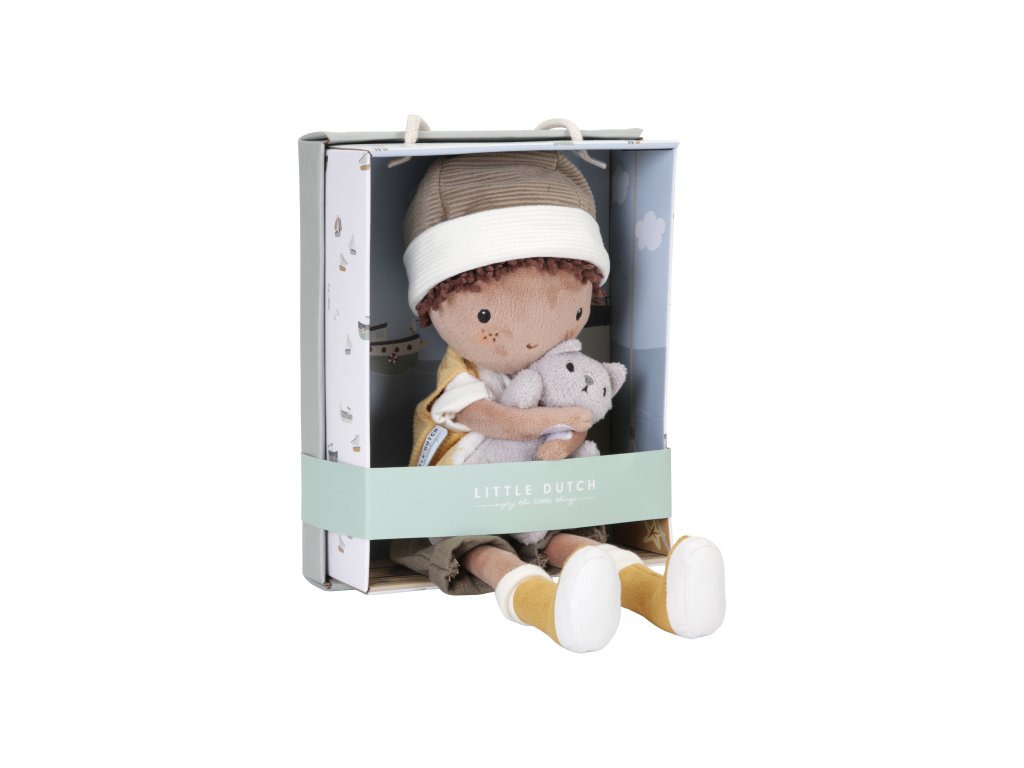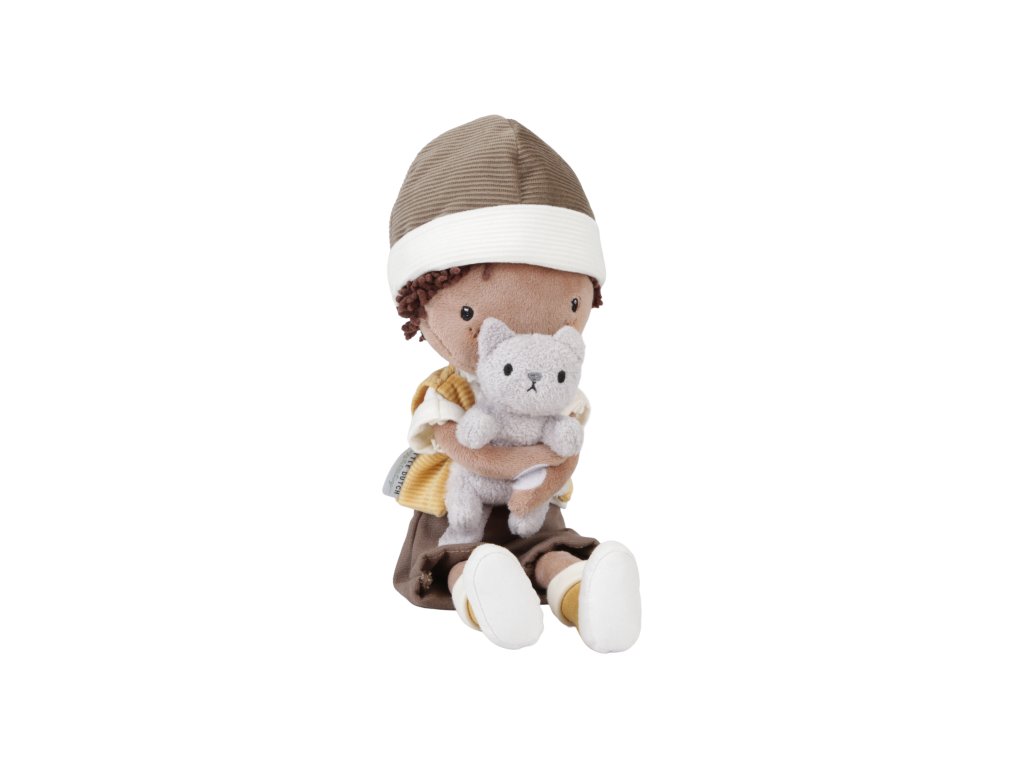 Nezbedná plyšová bábika Jake z mäkkého jemného materiálu je oblečená do vestičky, čiapky a čižiem. V náručí drží plyšovú mačičku, bez ktorej nedá ani krok! Bábika je vhodná na hranie aj maznanie a bude sa s ňou aj krásne zaspávať!