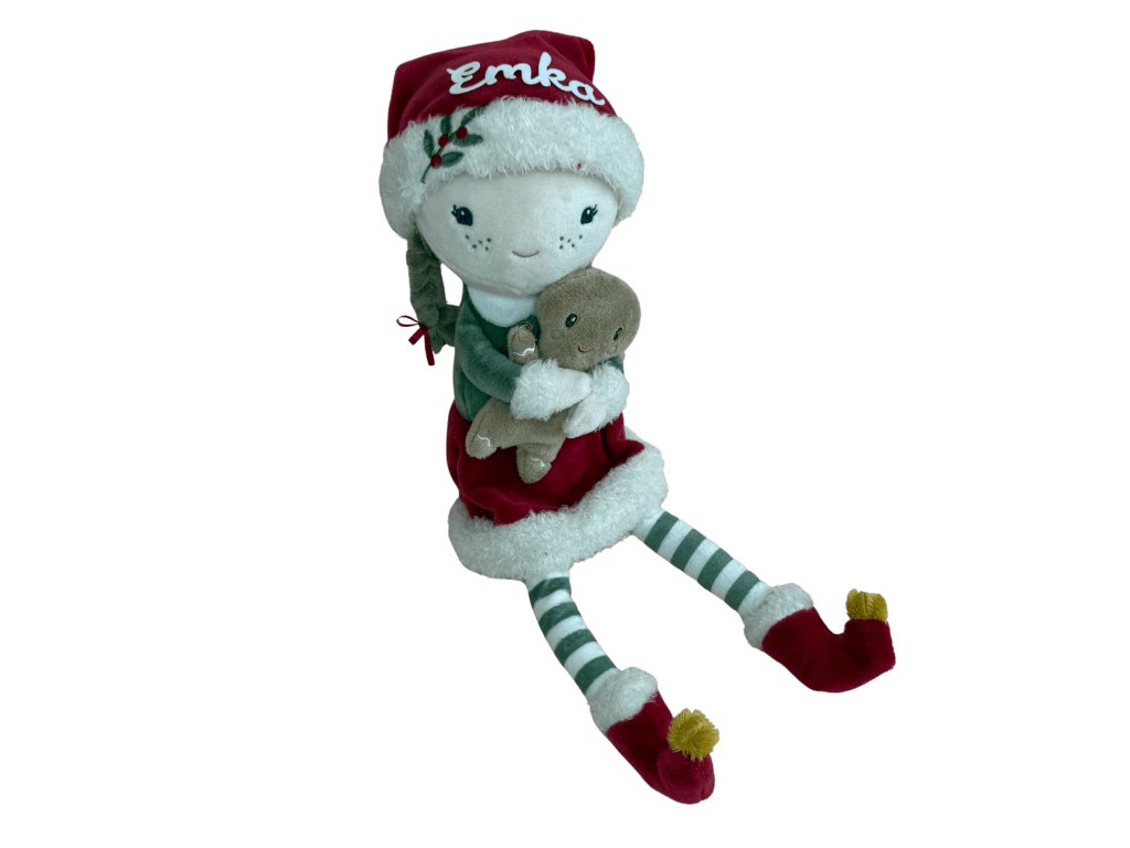 Bábika je vyrobená z jemného polyesteru a dodáva sa v elegantnej darčekovej krabičke, takže poteší aj ako originálny vianočný darček. Je súčasťou špeciálnej vianočnej kolekcie doplnkov a hračiek Little Dutch.