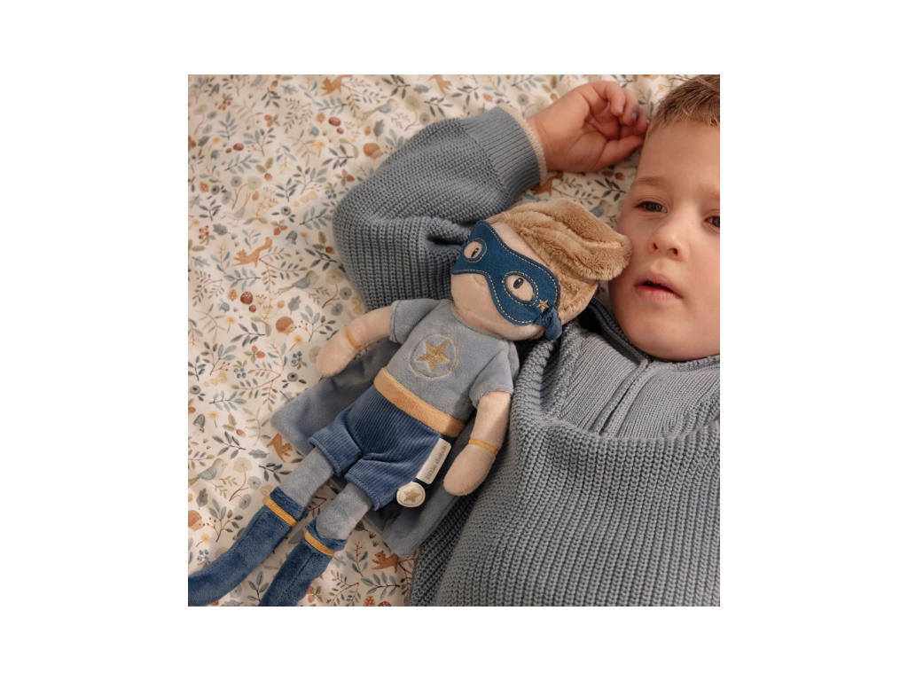 Originálna plyšová bábika v podobe superhrdinu Jima z mäkkého jemného materiálu je oblečená do krásneho kostýmu superhrdinu s maskou. Je vhodná na hranie aj maznanie a bude sa s ňou aj krásne zaspávať!