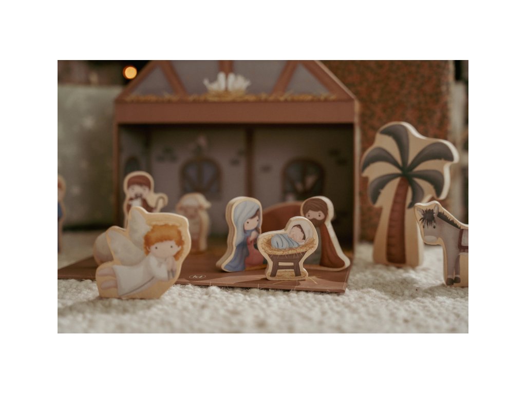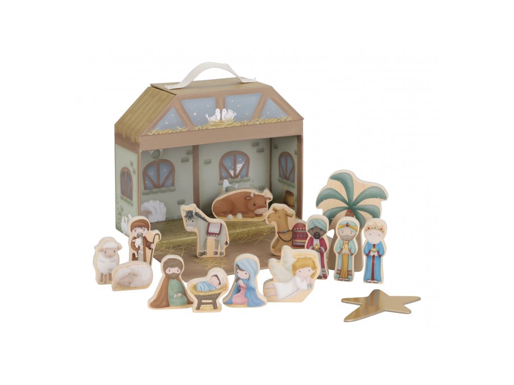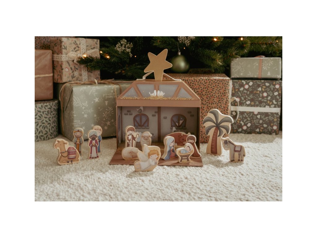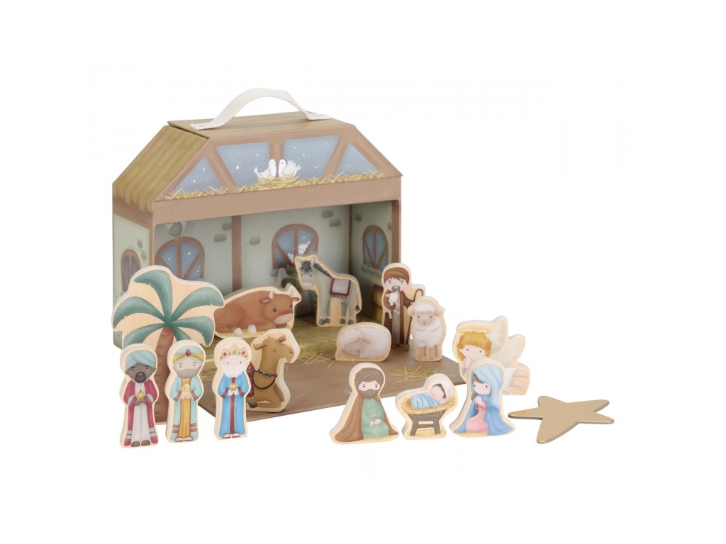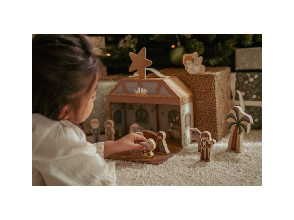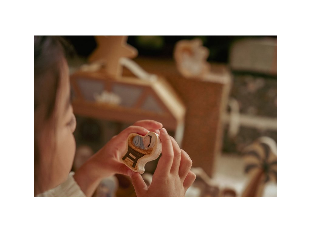 Krásny betlehem s postavami z tradičného vianočného príbehu poteší vás aj vaše deti každé Vianoce. 14 postavičiek je vyrobených z dreva, chliev z kvalitného pevného kartónu slúži aj ako prenosný a úložný kufrík.