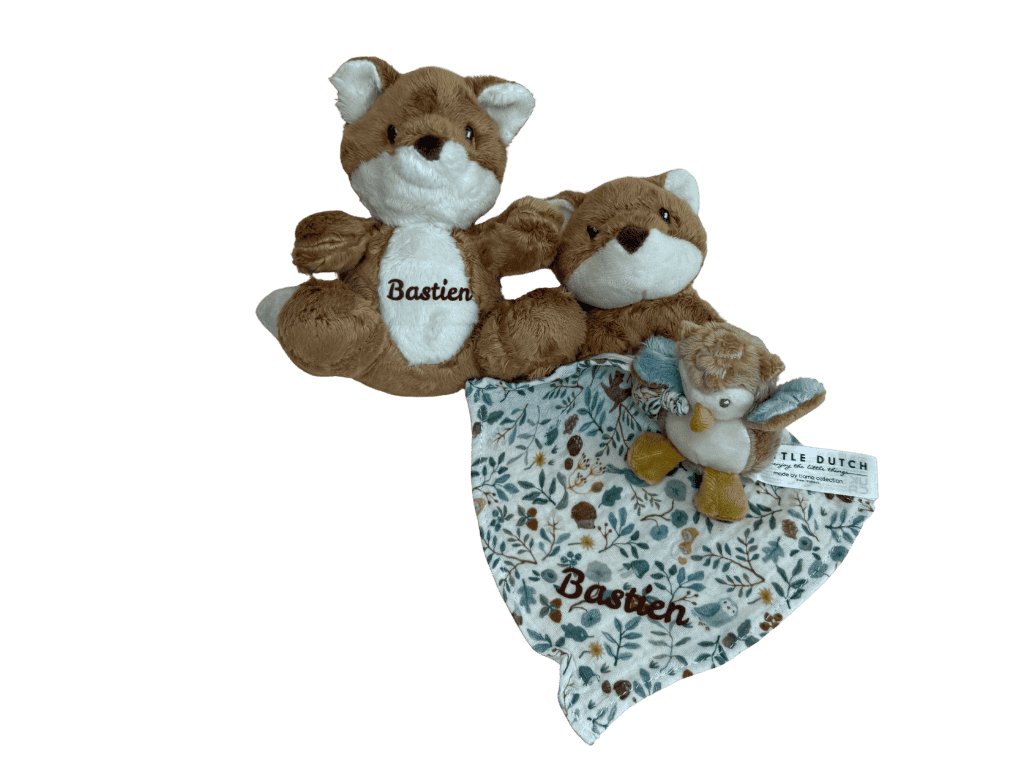 Krásna darčeková sada plyšových hračiek je ideálna ako darček pre novonarodené bábätko. Sada obsahuje hryzátko s líškou, maznáčika so sovou a plyšovou líšku.