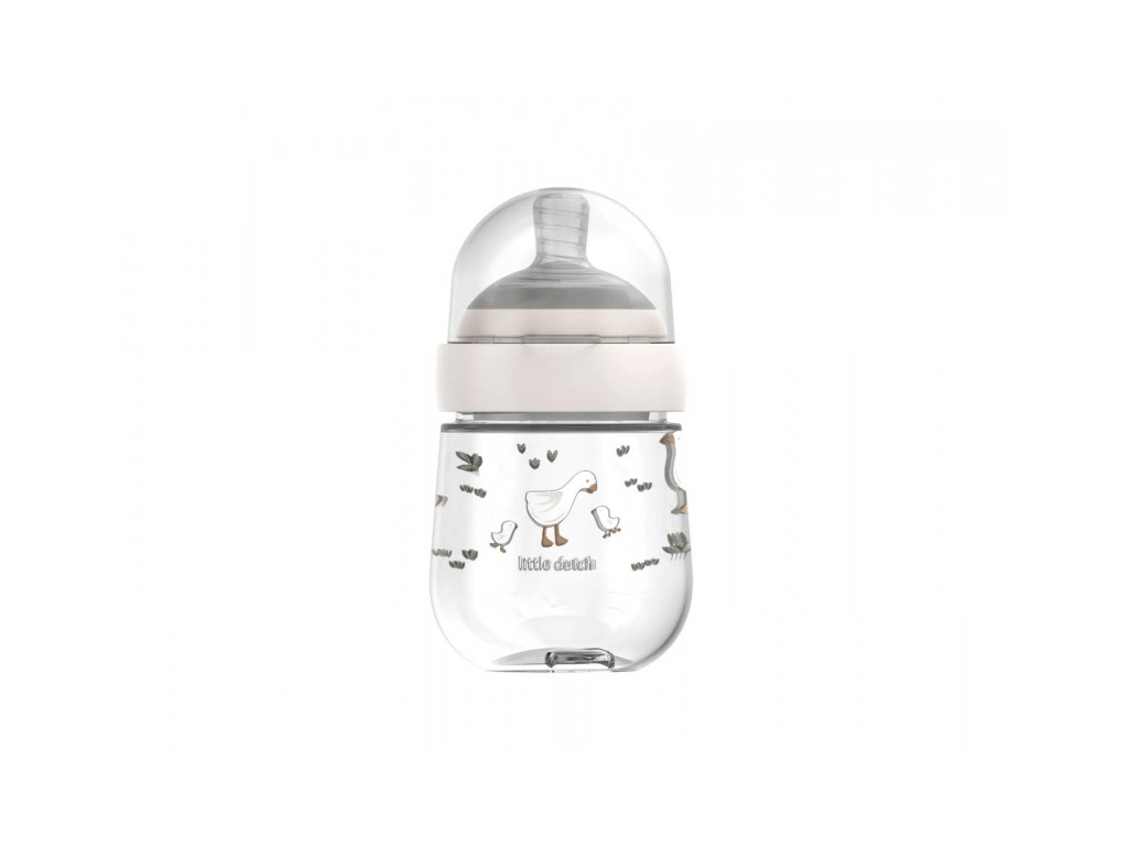 Dojčenská fľaša Little Dutch s krásnou potlačou a cumlíkom s antikolikovým ventilom je ideálna na kŕmenie vášho bábätka od narodenia doma aj na cestách. Vďaka ergonomickému tvaru sa fľaštička pohodlne drží.