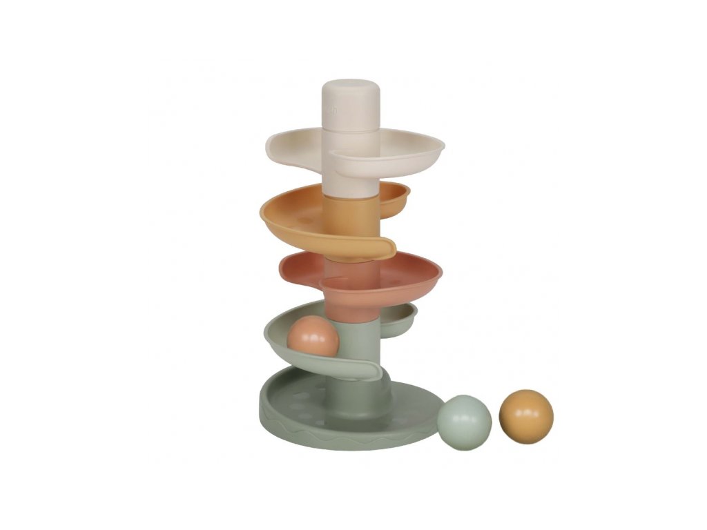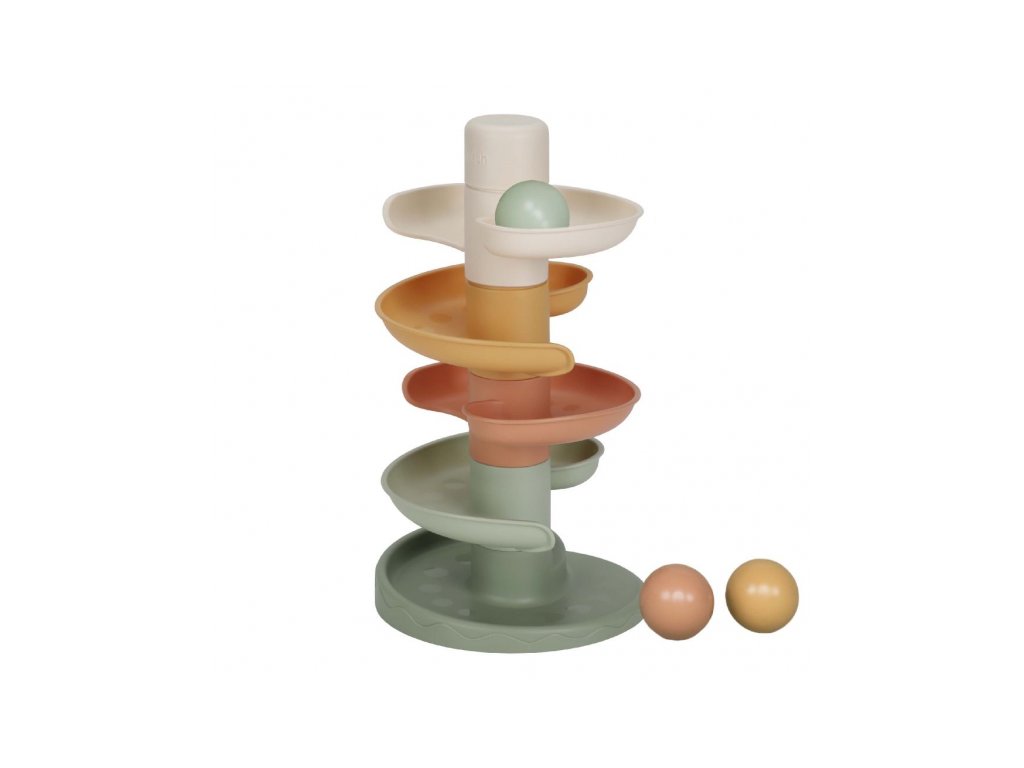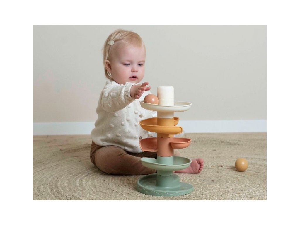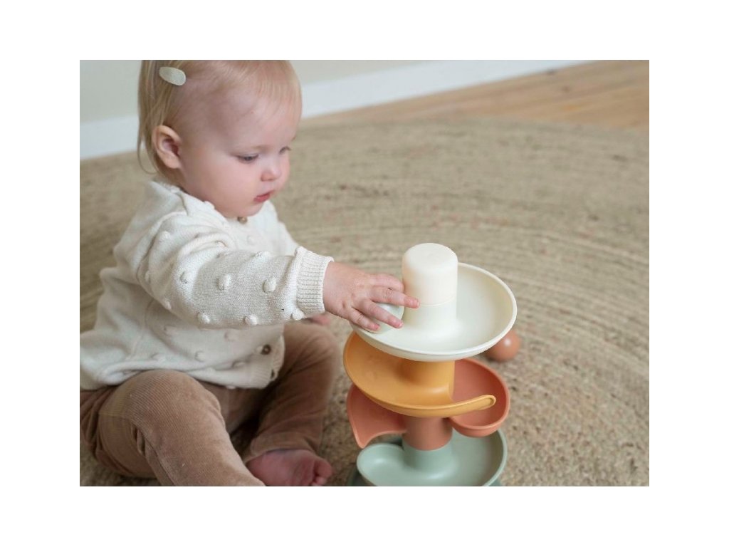 Sledujte s vaším dítětem, jak se míčky kutálí kolem dokola jeden za druhým! Dráhu v jemných pastelových barvách snadno sestavíte z pěti dílů a zábava může začít.