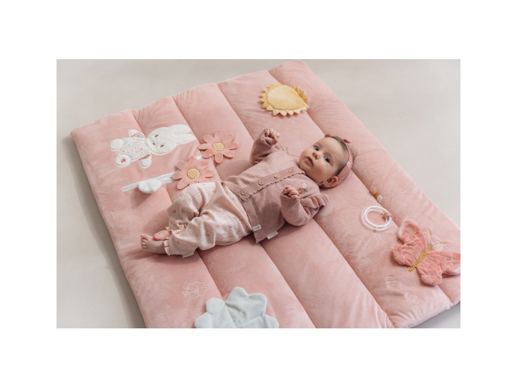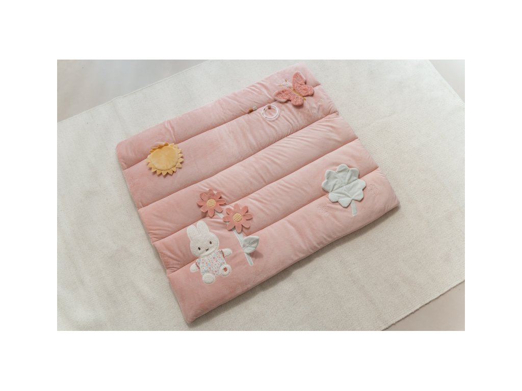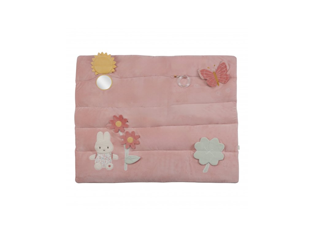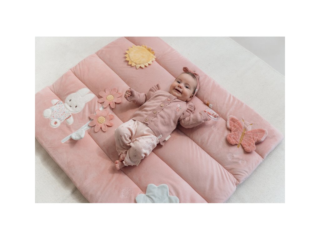 Měkká hrací deka nabízí pohodlí a různorodé aktivity pro zabavení vašeho dítěte. Na dece najdete plyšovou králičí holčičku Miffy, sluníčko s bezpečným zrcátkem, kytičku, čtyřlístek s šusticími lístky, plyšového motýlka i chrasticí kroužek. Hrací deka je součástí kolekce hraček Little Dutch Miffy, jejichž ústřední postavou je roztomilá králičí holčička Miffy, známá z knížek pro děti holandského spisovatele Dicka Bruny. Rozměry: 80 x 100 cm Složení: 100% polyester Vhodné pro děti od narození.Dodatočné parametre
