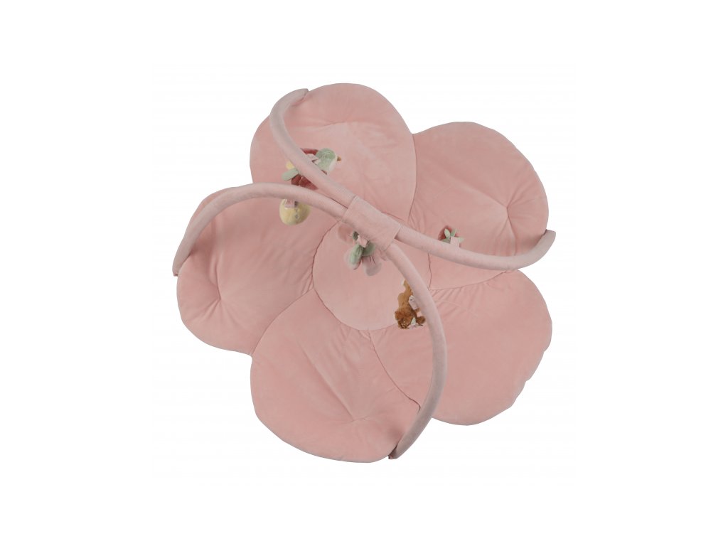 Mäkká hracia deka v tvare kvetu s hrazdou, na ktorej sú zavesené hračky v podobe srnky, vtáčika, kvety, jahôdky a huby. Pri skúmaní hračiek upúta pozornosť dieťaťa hrkanie, šušťanie, pískanie i zvonenie. Hračky sú odnímateľné a je možné ich používať aj samostatne.
