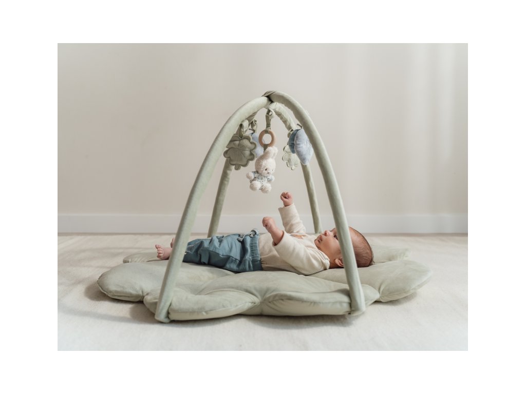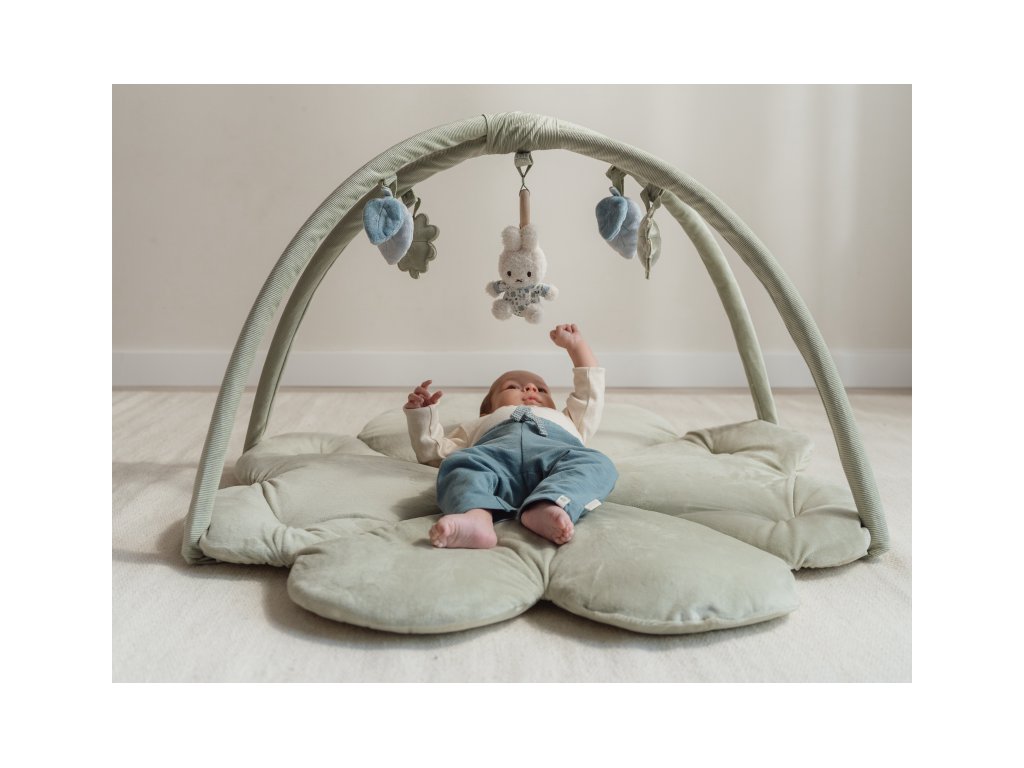Mäkká hracia deka v tvare štvorlístka s hrazdou, na ktorej sú zavesené hračky v podobe králika Miffy a lístkov rôznych tvarov. Pri skúmaní hračiek upúta pozornosť dieťaťa hrkanie, šušťanie, pískanie i zvonenie. Hračky sú odnímateľné a je možné ich používať aj samostatne.