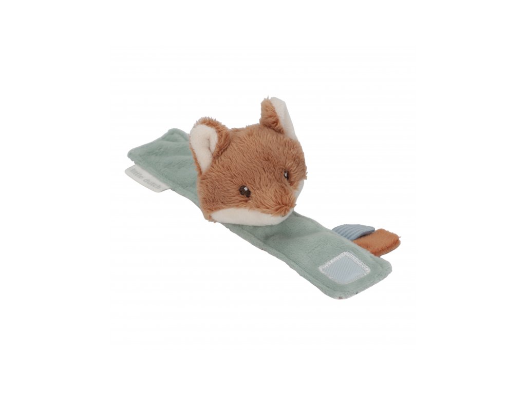 Mäkká hrkálka s rozkošnou líškou ľahko pripevníte na ruku dieťaťa s pomocou úchytu na suchý zips. Hračka z jemného plyšového materiálu hrká, šuštia a láka dieťa na skúmanie.