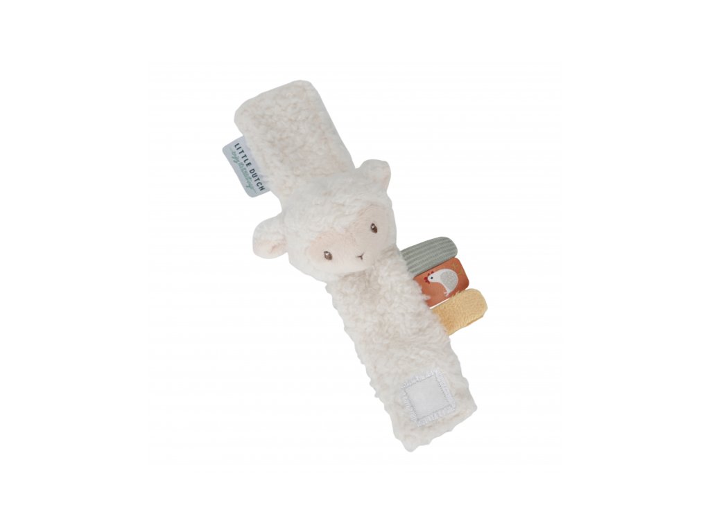 Mäkkú hrkálku s rozkošnou ovečkou ľahko pripevníte na ruku dieťaťa s pomocou úchytu na suchý zips. Hračka z jemného plyšového materiálu hrká, šuštia a láka dieťa na skúmanie.