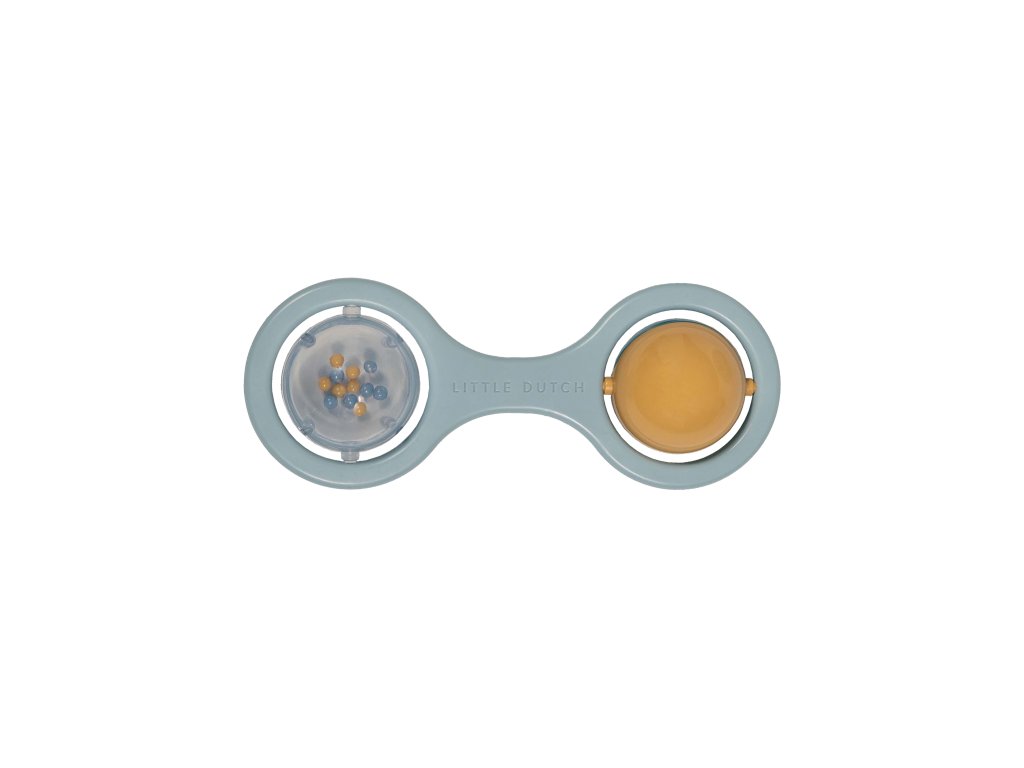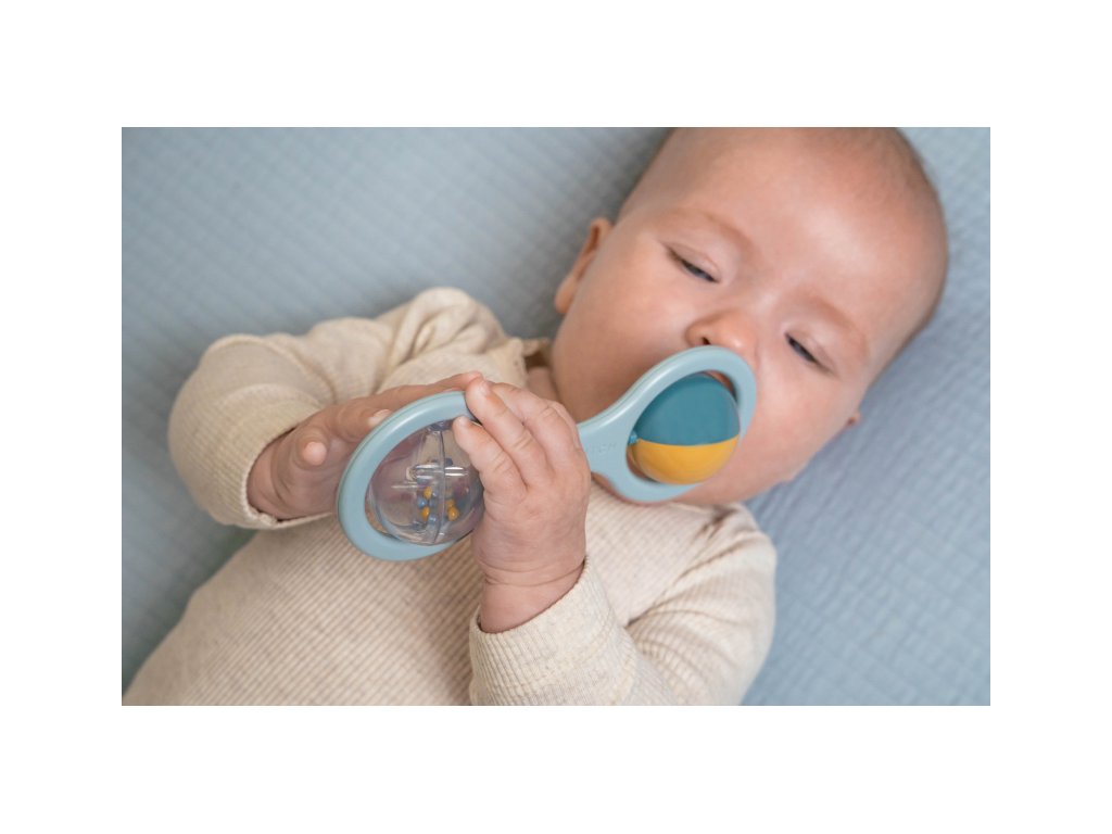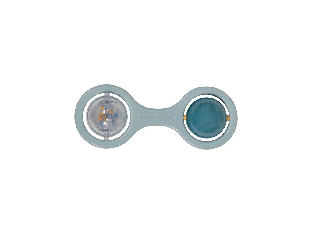 Hrkálka s dvoma otáčajúcimi sa guličkami je ideálna ako prvá hračka pre vaše bábätko. Pozornosť dieťaťa upútajú chrastiace korálky v priehľadnej guličke aj striedajúce sa farby pri otáčaní dvojfarebnej guličky. Hrkálka má tvar pre ľahké uchopenie malými detskými ručičkami.