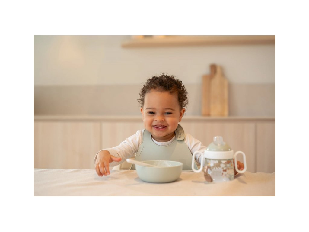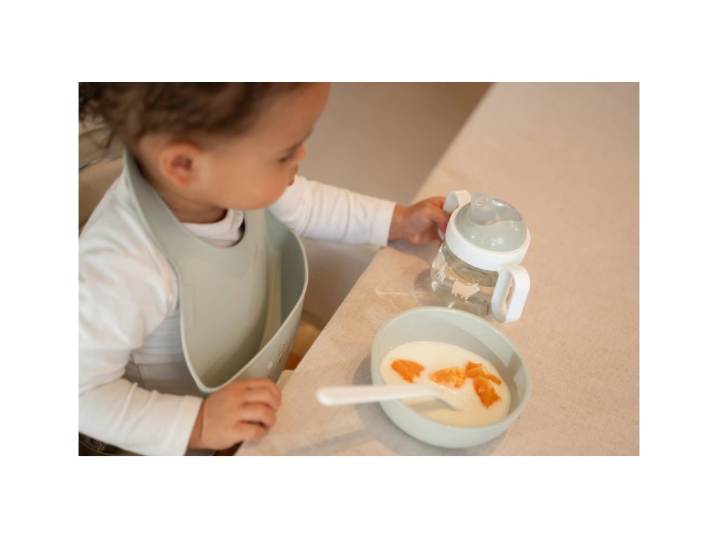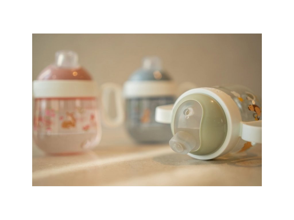 Hrnček s krásnou potlačou je vybavený mäkkým silikónovým náustkom pre pohodlné pitie a držadlami pre ľahké držanie. Viečko bráni vytečeniu obsahu hrnčeka pri prenášaní.