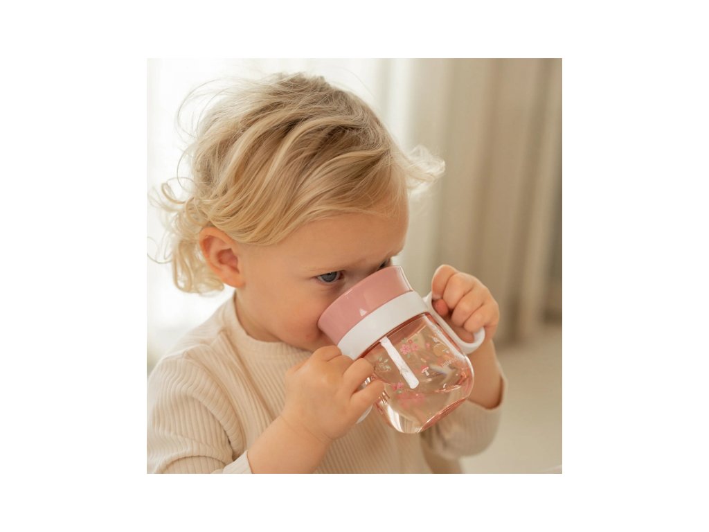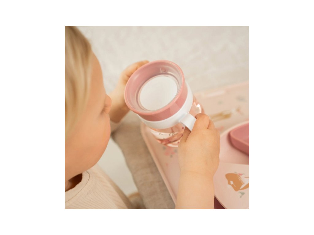 Trénovací hrnček je ideálny pre deti, ktoré sa učia piť z klasického hrnčeka. Silikónové viečko so systémom 360° umožňuje piť z ktoréhokoľvek miesta po obvode hrnčeka bez rizika rozliatia. Tekutina tečie z hrnčeka po naklonení k ústam dieťaťa kontrolovaným spôsobom, takže dieťa na seba pri pití obsah hnku nevyleje. Keď piť prestane, hrnček sa vďaka špeciálnej membráne automaticky uzavrie. Držadlá uľahčujú držanie hrnčeka malými detskými ručičkami.