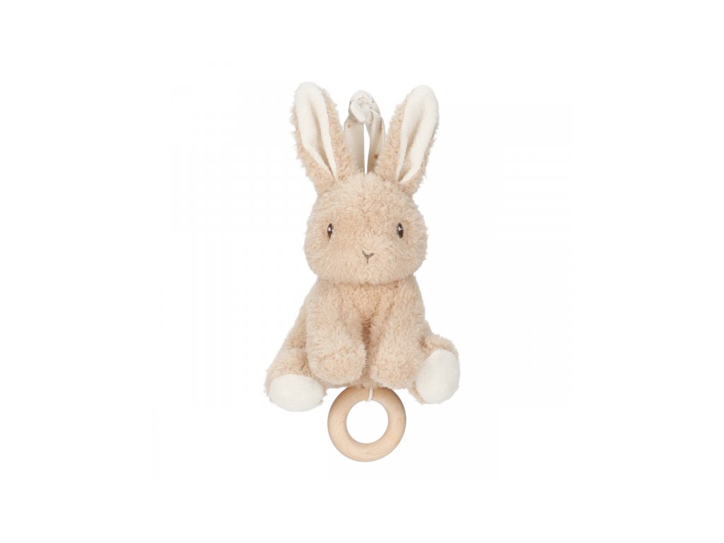 Závesný plyšový králik v sebe skrýva naťahovací hudobný box s príjemnou uspávankou, ktorá vaše bábätko upokojí a pomôže mu zaspať. Králika ľahko zavesíte blízko postieľky.