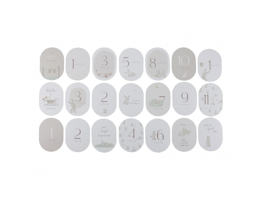 Sada originálnych 21 kariet s krásnymi ilustráciami vám pomôže zachytiť vzácne spomienky na jednotlivé míľniky v živote vášho bábätka od narodenia, od prvého úsmevu až po prvé krôčiky. Každý okamih je vzácny, každý míľnik je jedinečný a pri využití týchto kariet na fotografiách vždy spoznáte, ktorý z týchto okamihov fotografie zachytila.