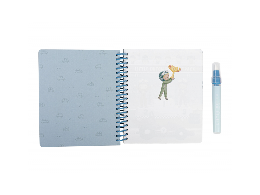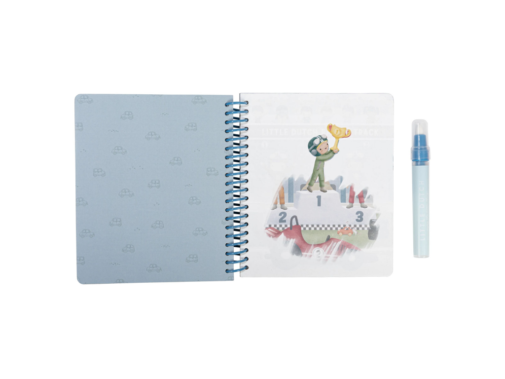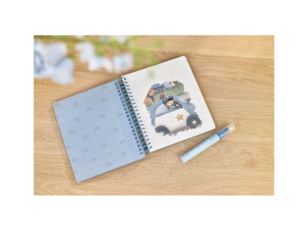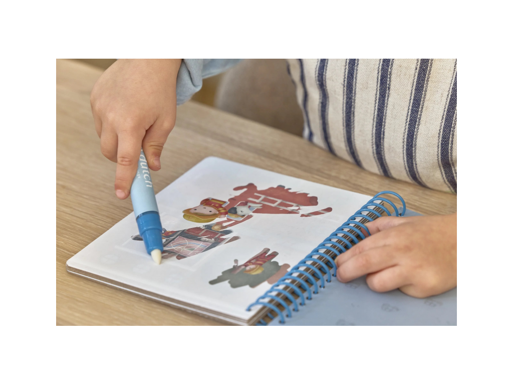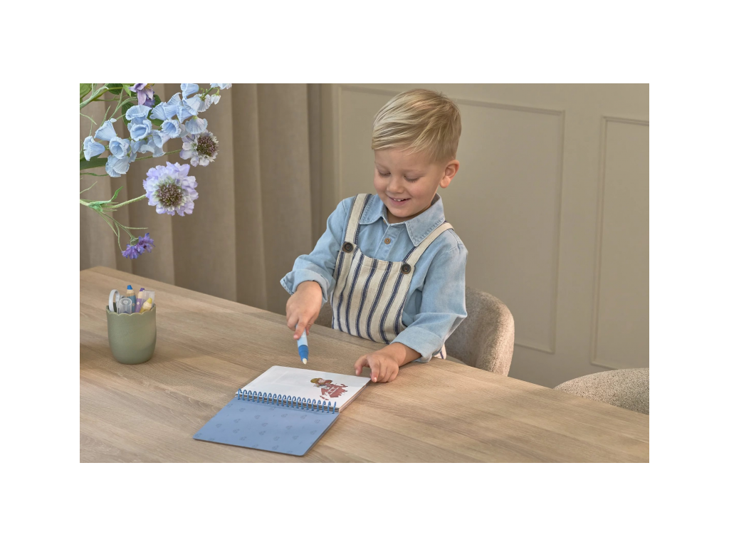 Knižka s piatimi ilustrovanými stránkami je opakovane použiteľná. Vďaka krúžkovej väzbe z pevného kartónu drží otvorená na pohodlné maľovanie.