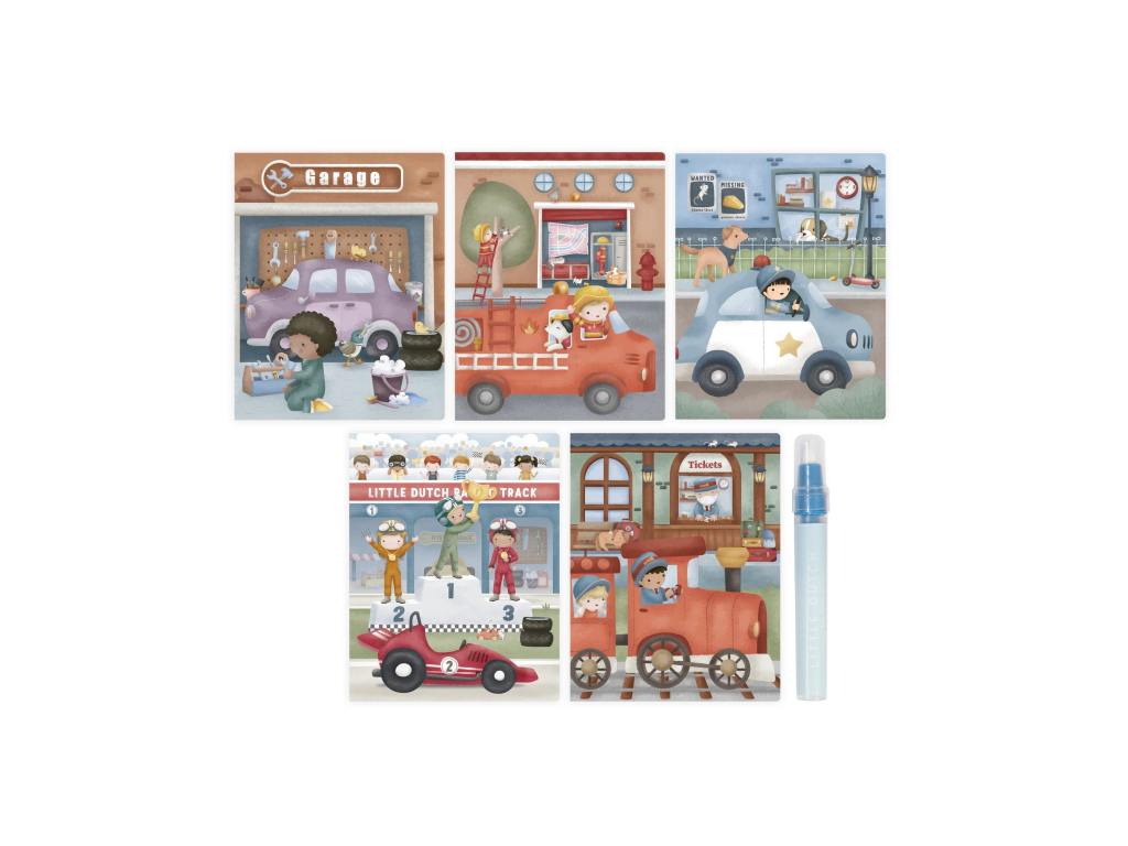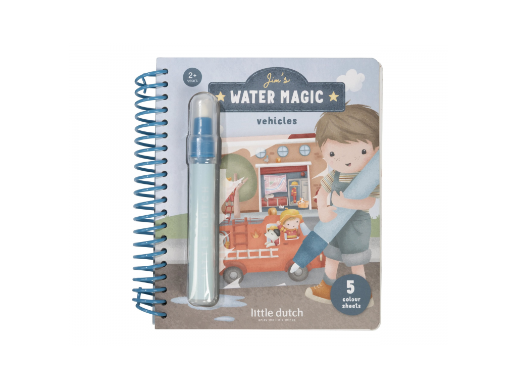 Kúzelná knižka skrýva na svojich stránkach krásne ilustrácie malého Jima, ktorý objavuje svet rôznych profesií a ich dopravných prostriedkov. Ilustrácie sa odkrývajú s pomocou vodného fixu, ktorý je súčasťou knižky. Stačí fixku naplniť vodou a malému umelcovi či umelkyni sa počas chvíľky postupne vynorí Jim a rôzne dopravné prostriedky.