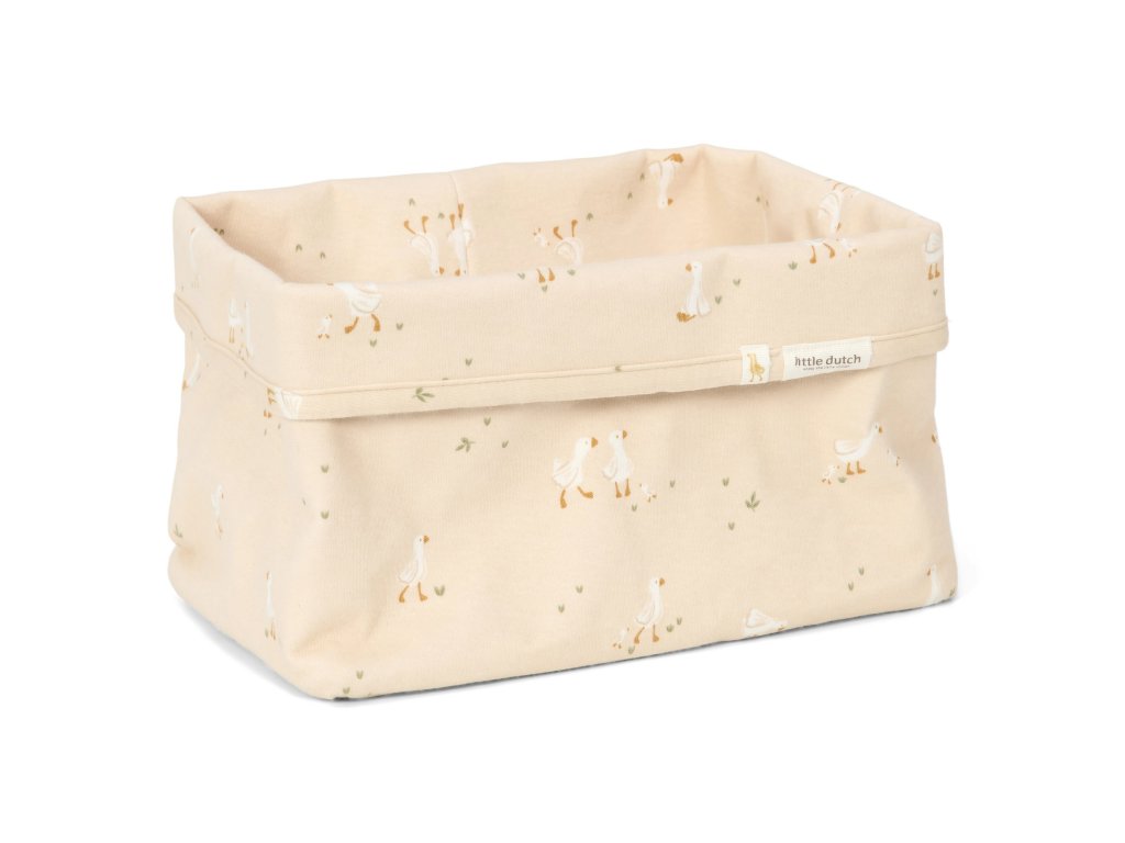 Košík s krásným potiskem husiček je vyroben z pevného bavlněného materiálu. Využijete jej pro přehledné uložení všeho, co potřebujete mít po ruce při každodenní péči o vaše miminko nebo na rychlé uklizení drobných hraček. Košík bude zároveň krásným doplňkem v dětském pokoji.