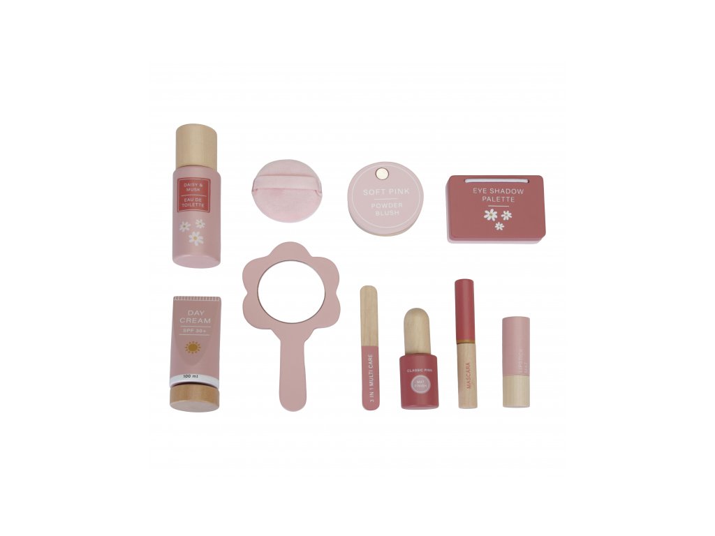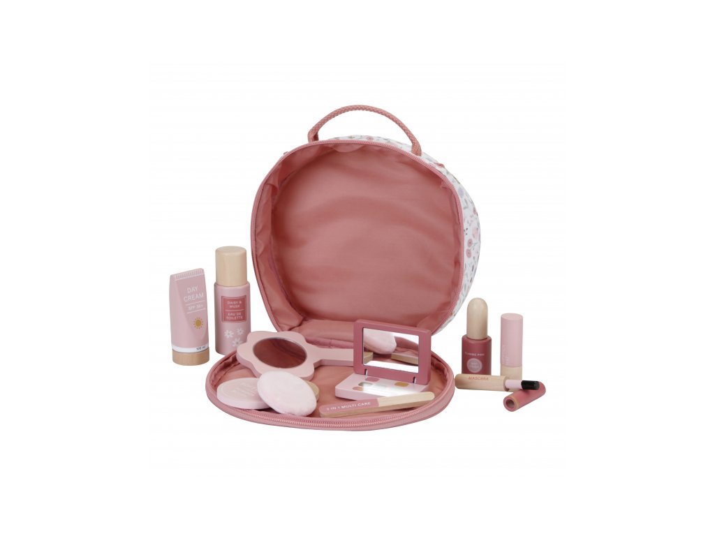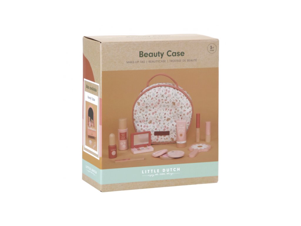 Krásna ako mamička. Deti sa učia napodobňovaním. Inšpirujte k nápaditej hre s touto krásnou kozmetickou taštičkou. Taška má farebný kvetinový vzor a je plná drevených hračiek. Je tam zrkadlo, fľaštička s parfumom a tuba krému. Sada ďalej obsahuje rúž, lak na nechty, púder na tvár, labutienku, očné tiene, riasenka a pilník na nechty. Kozmetické puzdro Little Dutch poskytuje zábavu bez neporiadku skutočného make-upu!