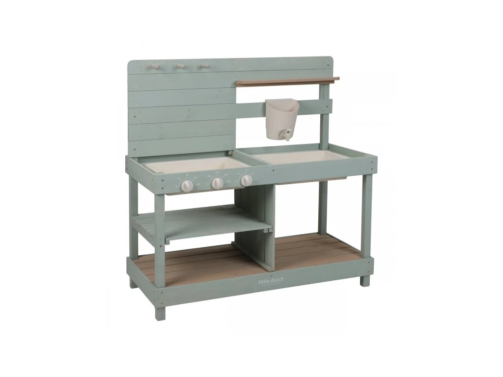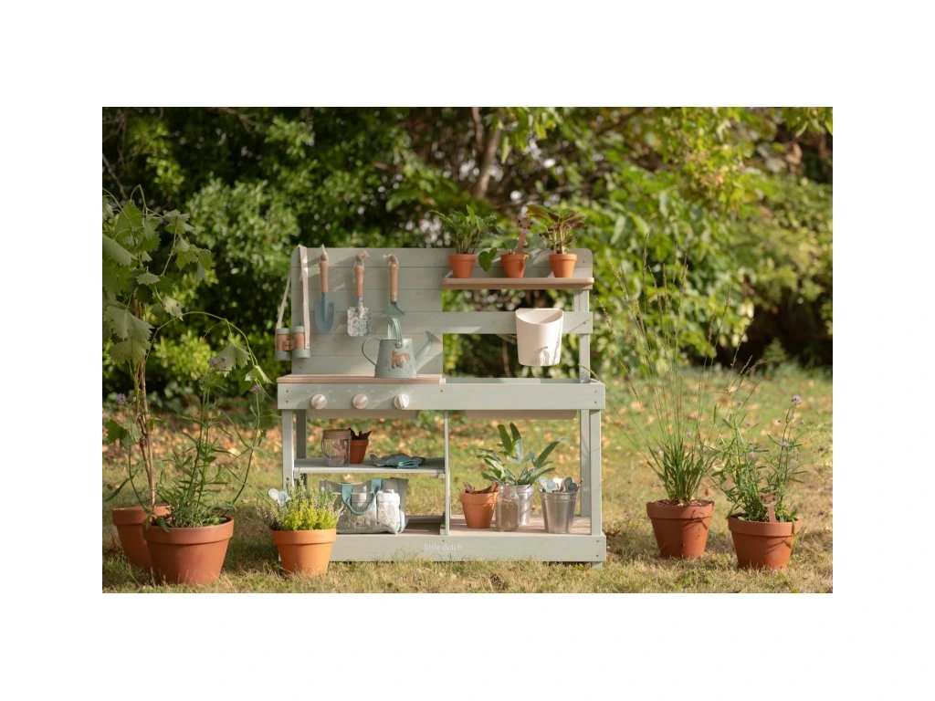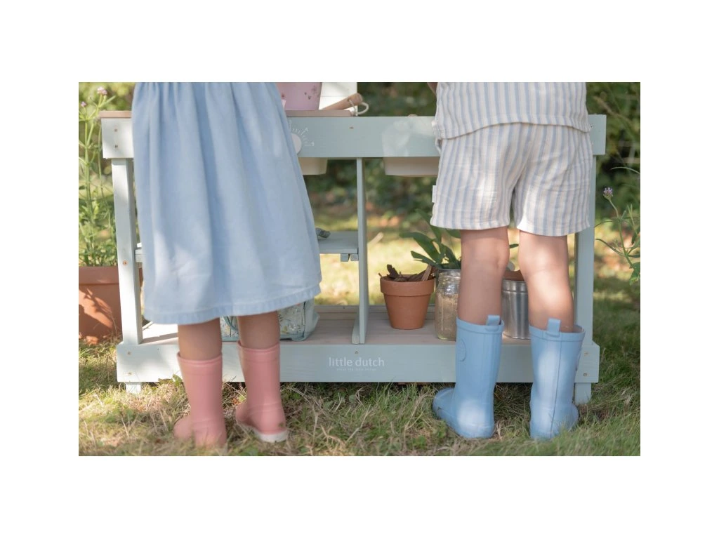 Okrem hry na varenie je kuchynka skvelá aj ako praktický pult pre malých záhradníkov, na ktorom môžu napr. sadiť kvety aj siet semienka do kvetináčov, zalievať ich a po skončení umyť všetko záhradnícke náčinie vodou, aby bolo pripravené na budúce záhradnícke aktivity.