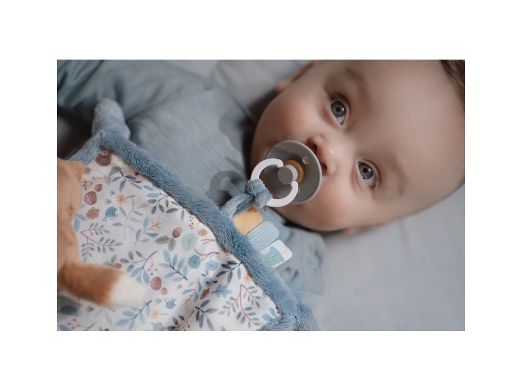 Plyšový maznáčik s rozkošnou líškou a úchytom pre cumlík láka na hranie aj maznanie. Maznáčik je vyrobený z veľmi jemného a príjemného materiálu a je ideálny ako spoločník do postieľky pre pokojné zaspávanie.