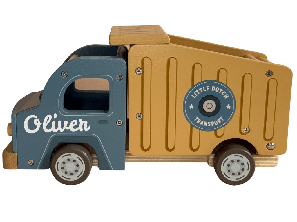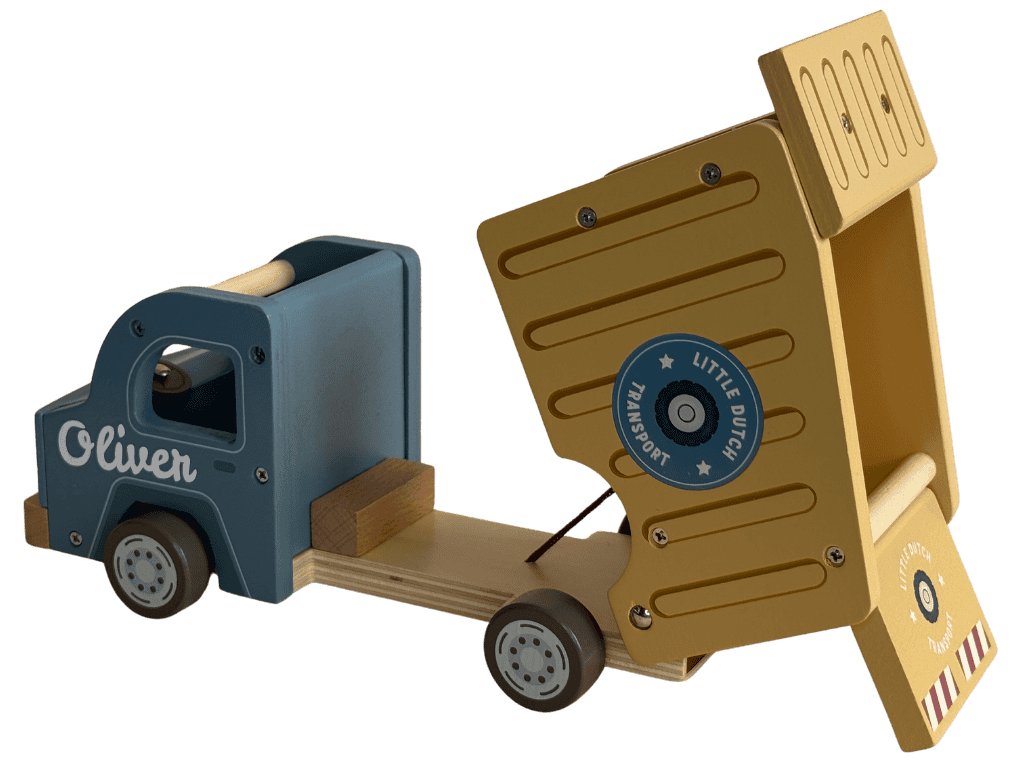 Nákladiak so sklápačkou je ideálna hračka pre malých staviteľov, ktorí chcú prevážať, vykladať a vymýšľať nové príbehy. Kvalitné drevené prevedenie s dôrazom na detail zaisťuje dlhú životnosť a hodiny kreatívnej hry. Auto má funkčnú sklápaciu korbu, vďaka ktorej deti ľahko naložia a vyložia svoj náklad. Súčasťou balenia sú dvaja vodiči a rôzne typy nákladu – klády, kamene a drevené debničky. Deti tak môžu vymýšľať stále nové príbehy, rozvíjať fantáziu a precvičovať jemnú motoriku.
