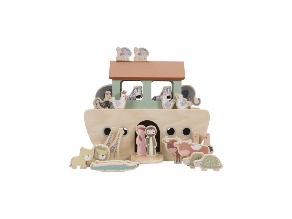 Táto 25-dielna sada obsahuje archu s dverami, palubu, ktorú možno zdvihnúť a priviesť všetky zvieratá na palubu. Noah vezme svoju ženu a veľkú skupinu zvierat na cestu cez oceán: 2 levy, 2 slony, 2 zebry, 2 opice, 2 holuby, 2 krokodíly, 2 korytnačky, 2 žirafy, 2 pštrosy, 2 kravy, kurča a kohúta. Táto sada Noemovej archy podporuje hranie rolí, zvyšuje predstavivosť a slovnú zásobu, zatiaľ čo sa vaše dieťa učí tento klasický príbeh
