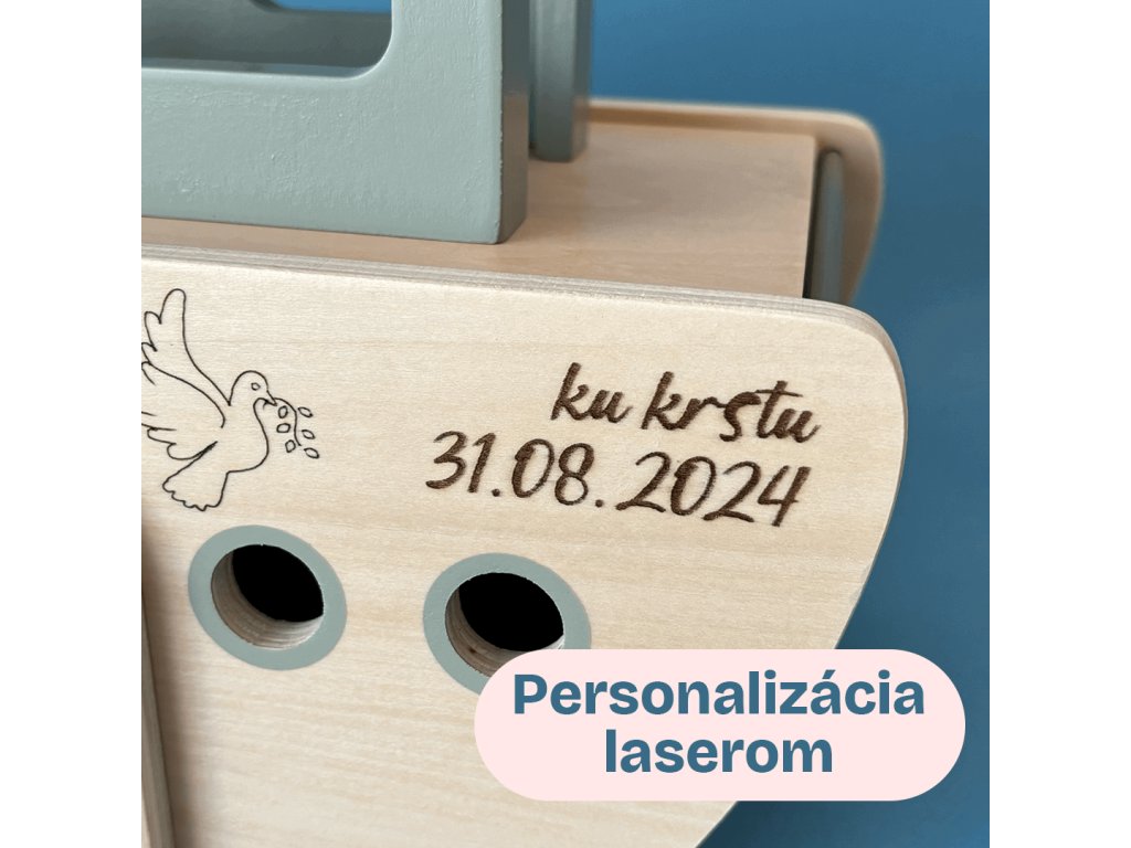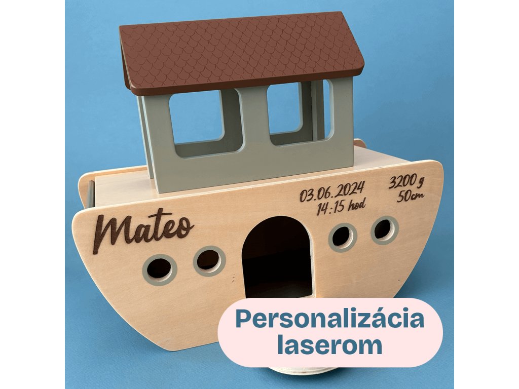 Vďaka svojmu symbolickému motívu zvieratiek a archy je táto hračka dokonalým darom pre taký výnimočný okamih ako je krst. Rovnako však dokáže potešiť aj pri narodení dieťatka, keď do nej pridáme všetky údaje z jeho prvého dňa života.