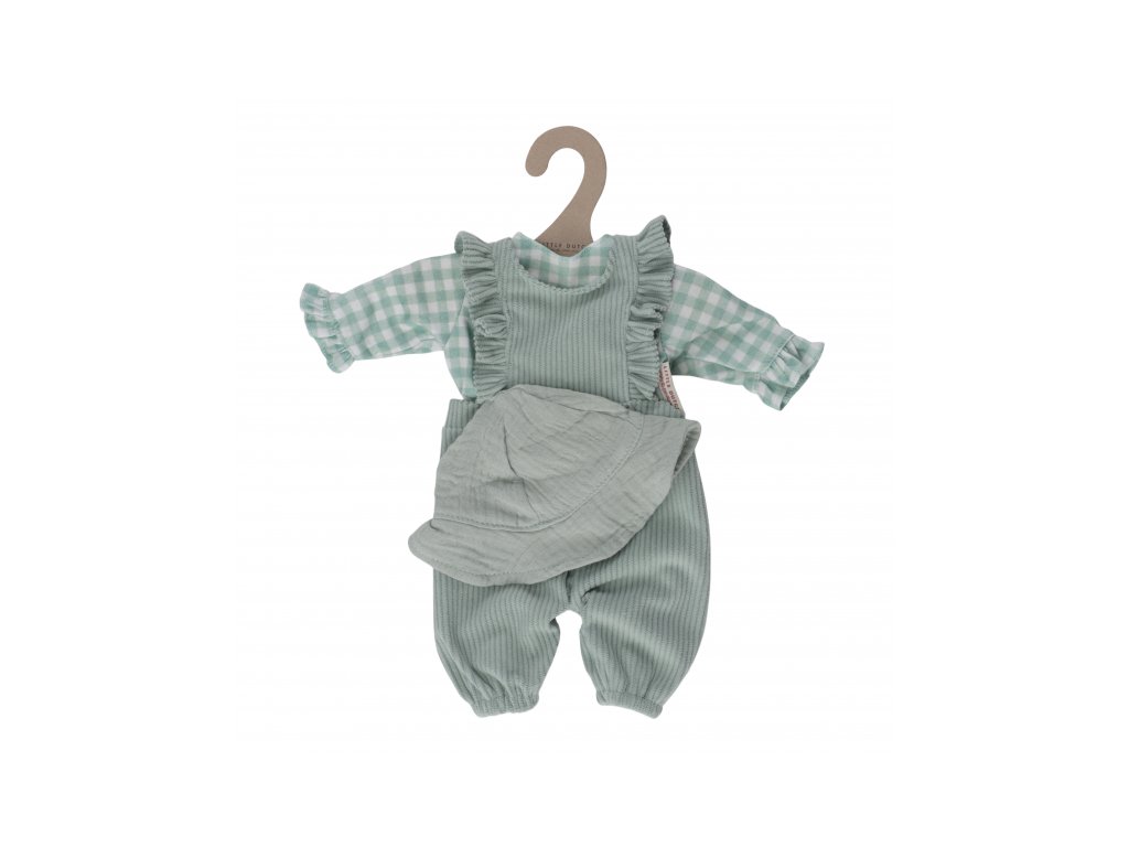 Krásná sada oblečení pro panenku Little Dutch Baby obsahuje overal s dlouhými nohavicemi a všitým kostkovaným body s dlouhým rukávem a klobouček.