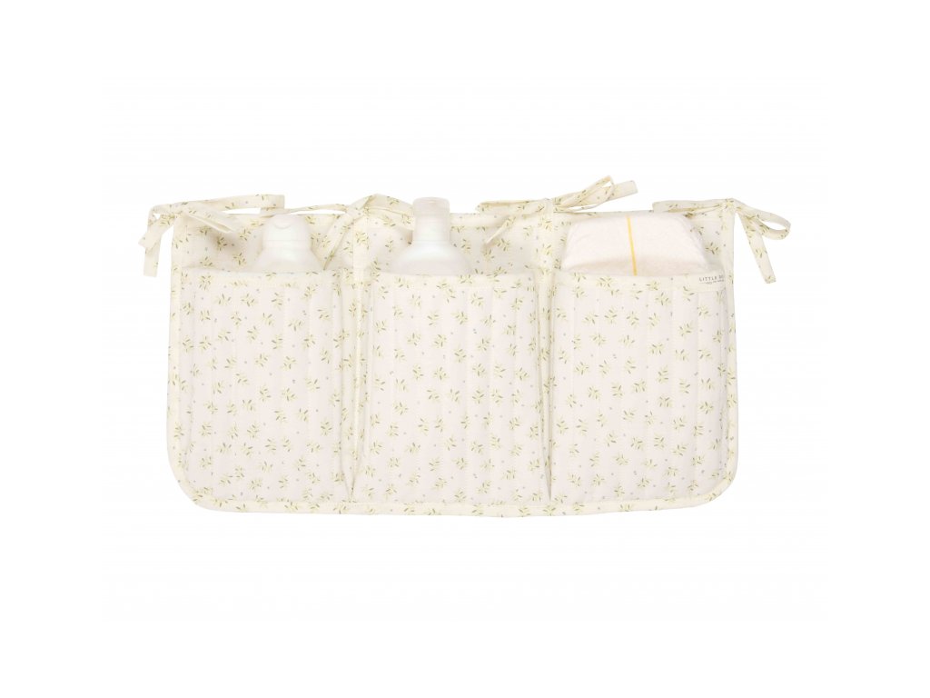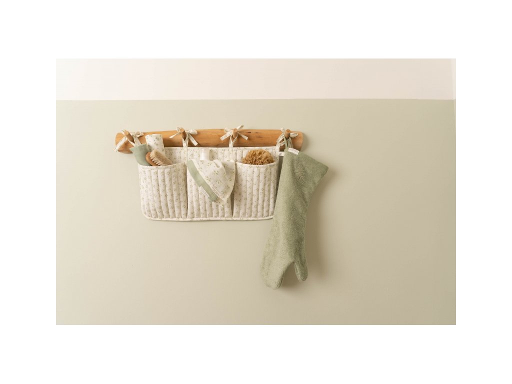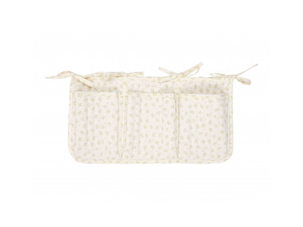 Praktický závesný organizér v krásnom prevedení s nežnou potlačou vám umožní mať všetko potrebné na starostlivosť o vaše bábätko vždy po ruke. Organizér zo 100% organickej bavlny ponúka tri priestranné vrecká na uloženie cumlíkov, podbradníkov, plienok, obrúskov, hračiek a pod. Pomocou praktických viazacích šnúrok ho ľahko pripevníte k prebaľovaciemu pultu, na stenu či na postieľku.