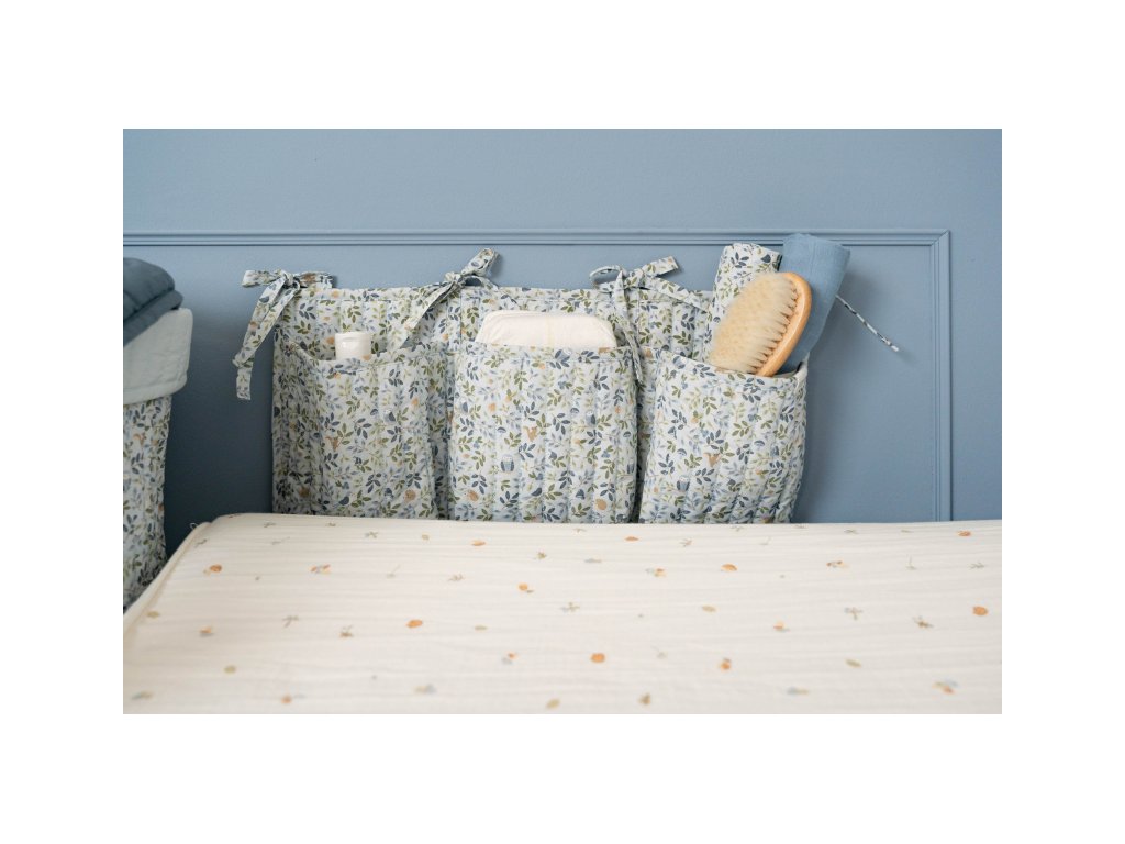 Praktický závesný organizér v krásnom prevedení s potlačou motívov zo života v lese vám umožní mať všetko potrebné na starostlivosť o vaše bábätko vždy po ruke. Organizér zo 100% organickej bavlny ponúka tri priestranné vrecká na uloženie cumlíkov, podbradníkov, plienok, obrúskov, hračiek a pod. Pomocou praktických viazacích šnúrok ho ľahko pripevníte k prebaľovaciemu pultu, na stenu či na postieľku.