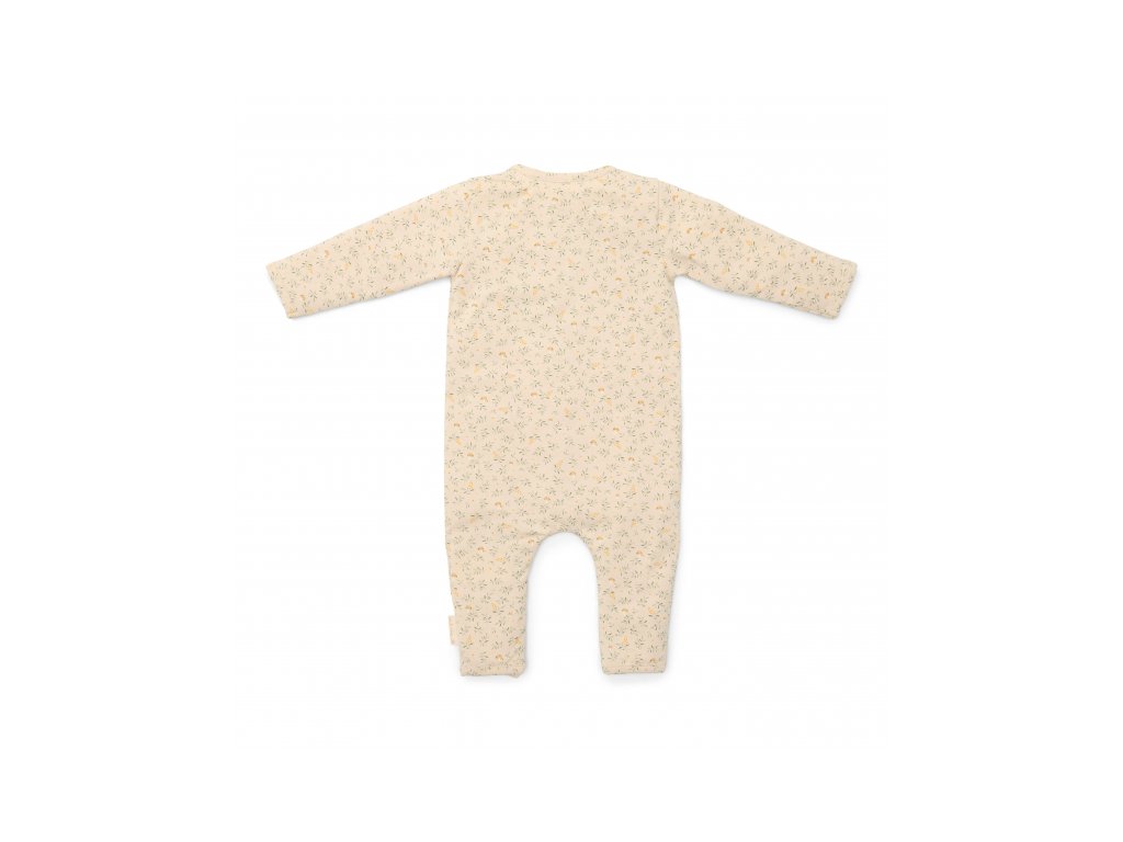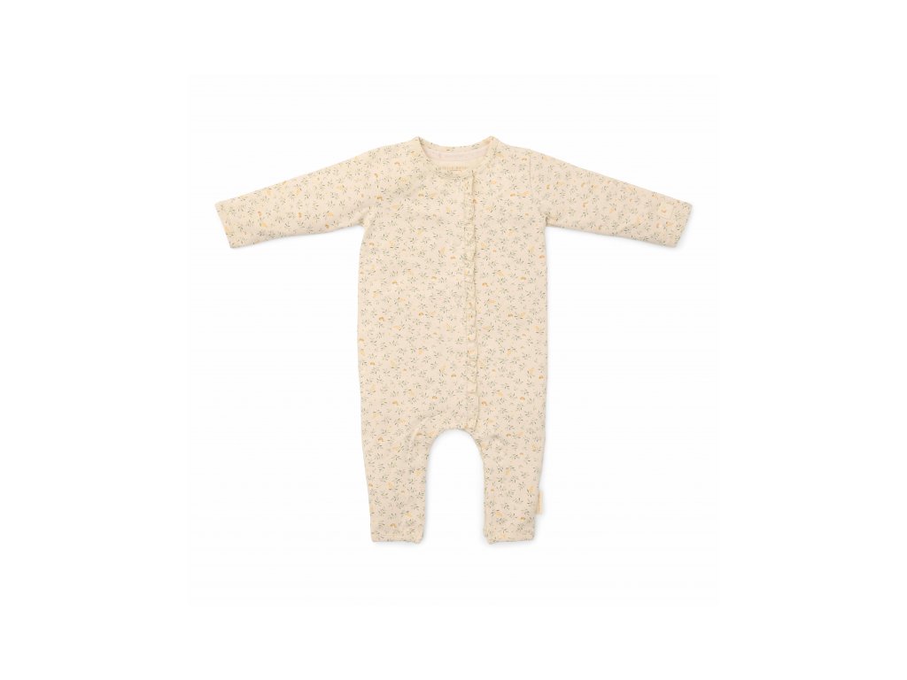 Overal na spanie z mäkkej organickej bavlny s jemnou potlačou má zapínanie na patentky na prednej strane av rozkroku pre ľahké obliekanie aj prebaľovanie dieťaťa.